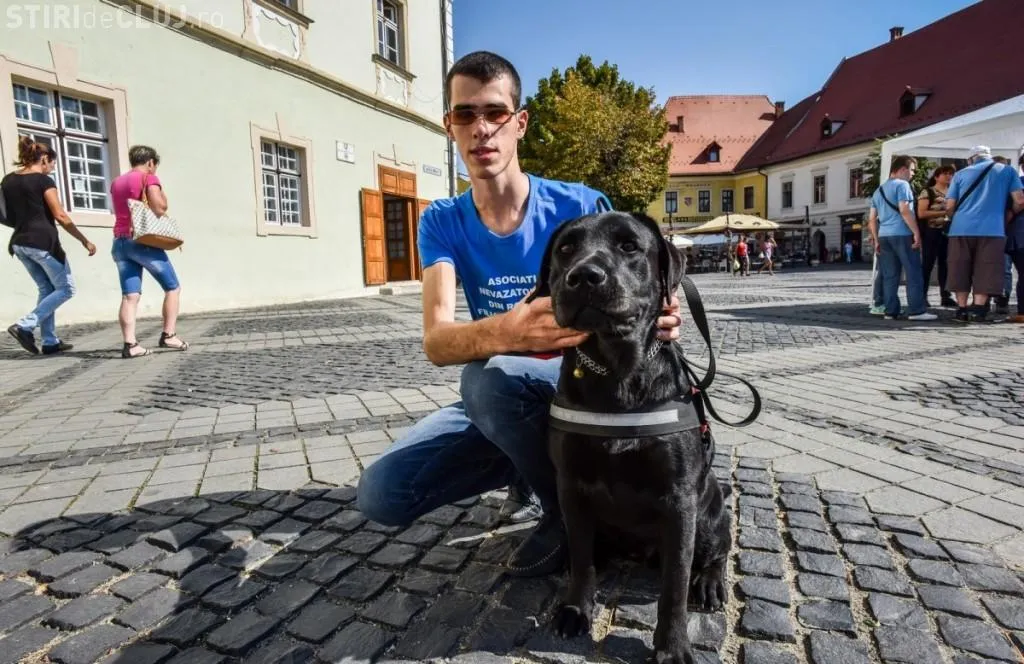 Paul Bogorin, un tânăr din Sibiu, ne-a relatat că persoanele nevăzătoare au mari probleme în a accesa spațiile publice alături de câinii lor ghizi.