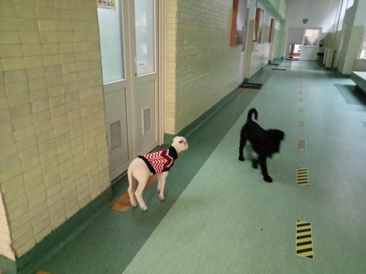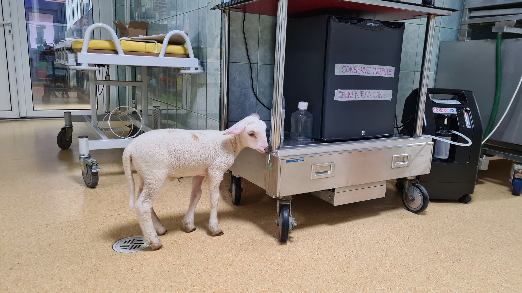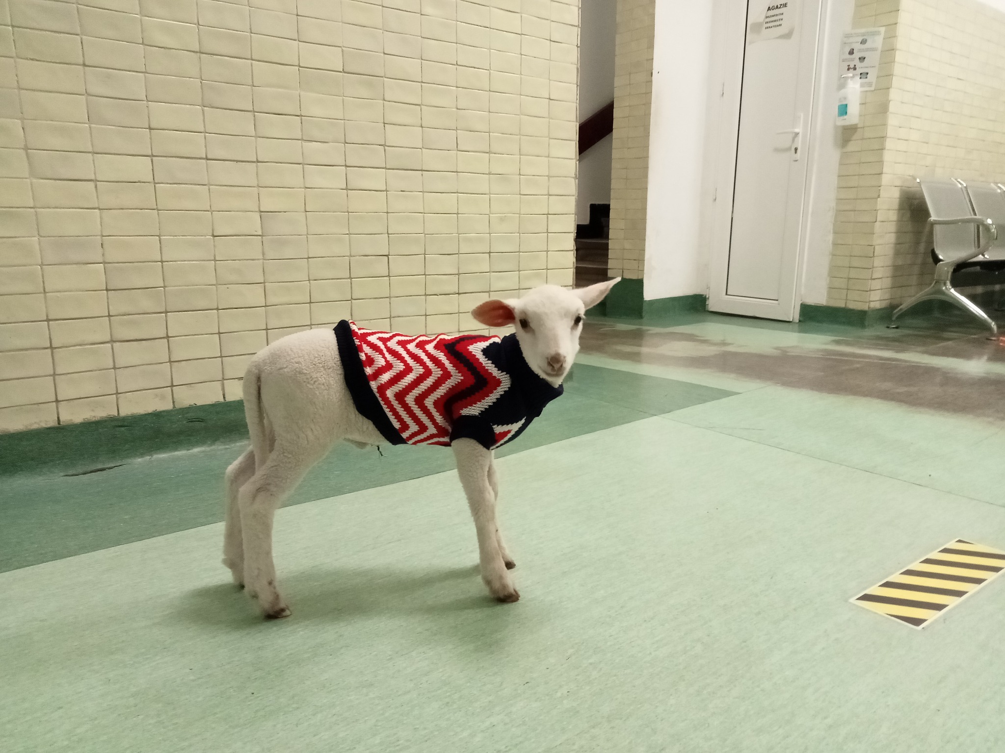 ”A fost cadoul nostru de 6 decembrie. De asta i-am pus numele Niculiță. A fost foarte mic, avea 2,2 kilograme, cu bronho-pneumonie, hipotermie. Șansele lui erau foarte mici. Din fericire, dotarea Spitalului de urgențe din facultatea noastră ne-a permis să îl băgăm în incubator, să îl îngrijim. După o lună, din fericire, am ajuns la 8,4 kilograme. E foarte vesel. Iubește tot ce există aici”, a explicat conf. dr. Simona Ciupe, de la Clinica de Rumegătoare și Animale de Rentă, din cadrul USAMV Cluj.