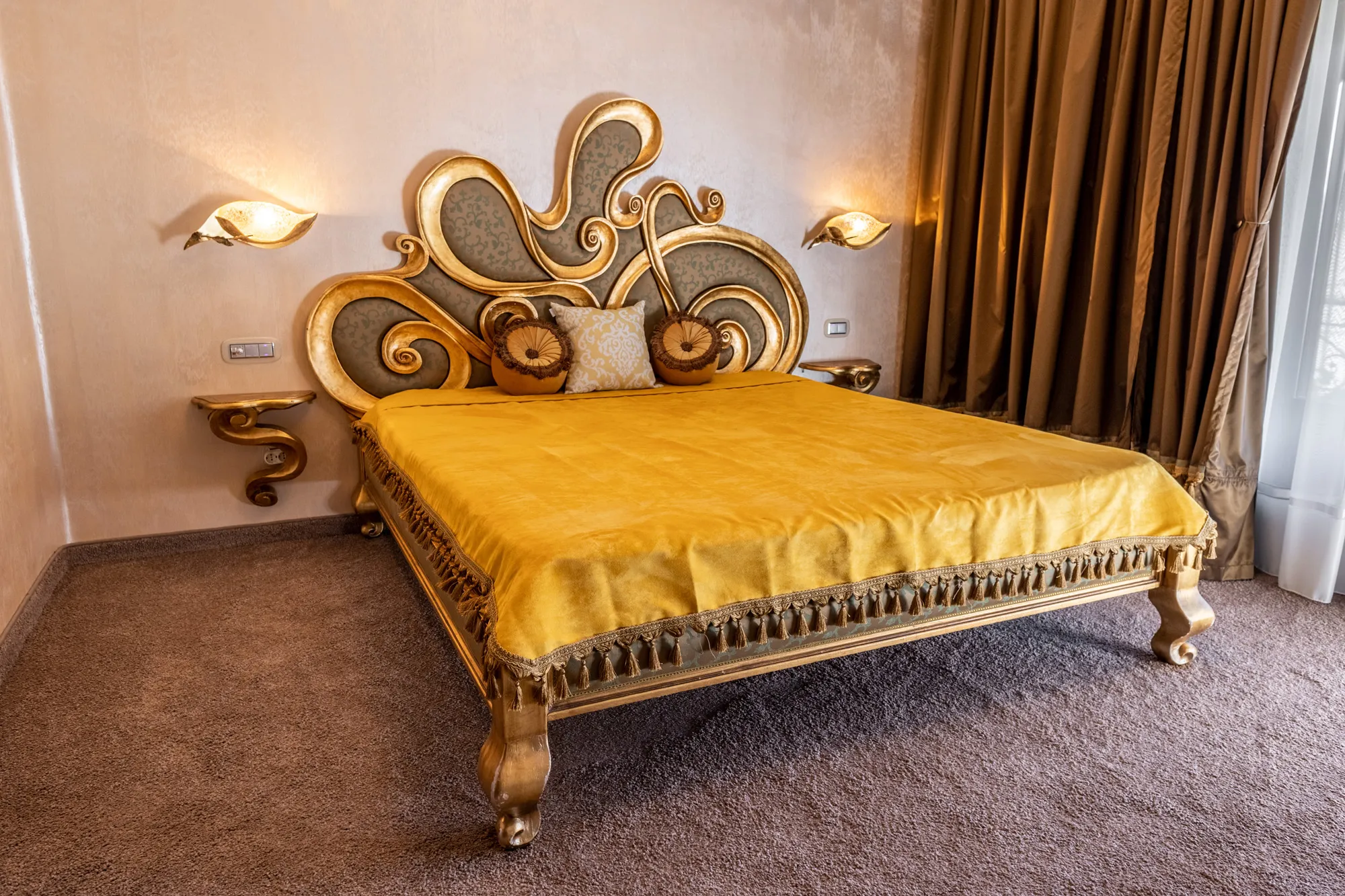 Zona matrimonială este cuprinsă dintr-un dormitor zugrăvit cu vopsea stucco veneziano iar ornamentele cât și corpurile de iluminat sunt placate cu aur de 24 karate (plinta, ornamente pat, lustre), baie dotată cu duș , cu un blat de marmură roșiatică si decorată cu mozaic Bisazza placat cu platină , toaletă dotată cu funcția de spalare si uscare, chiuveta si un dressing cu balcon.
