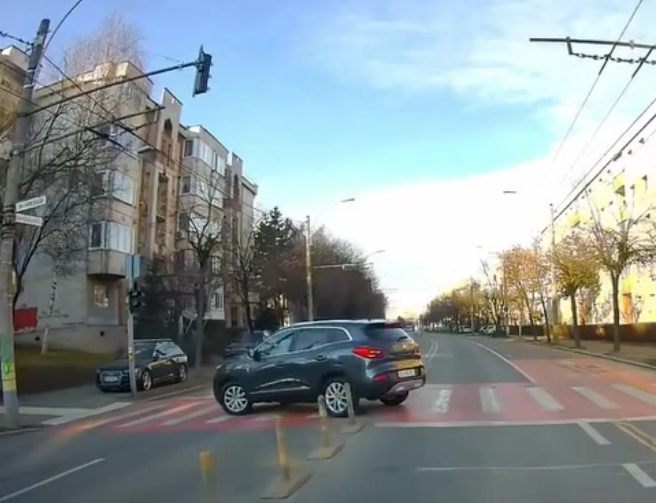 În timp ce circula pe bulevardul Nicolae Ttulescu, dinspre Iulius Mall spre Piața Cipariu, șoferul a decis să vireze la stânga pe strada Arieșului. Însă manevra este interzisă, nu doar prin indicatoare ci și prin amplasarea de stâlpi care fac imposibil virajul.