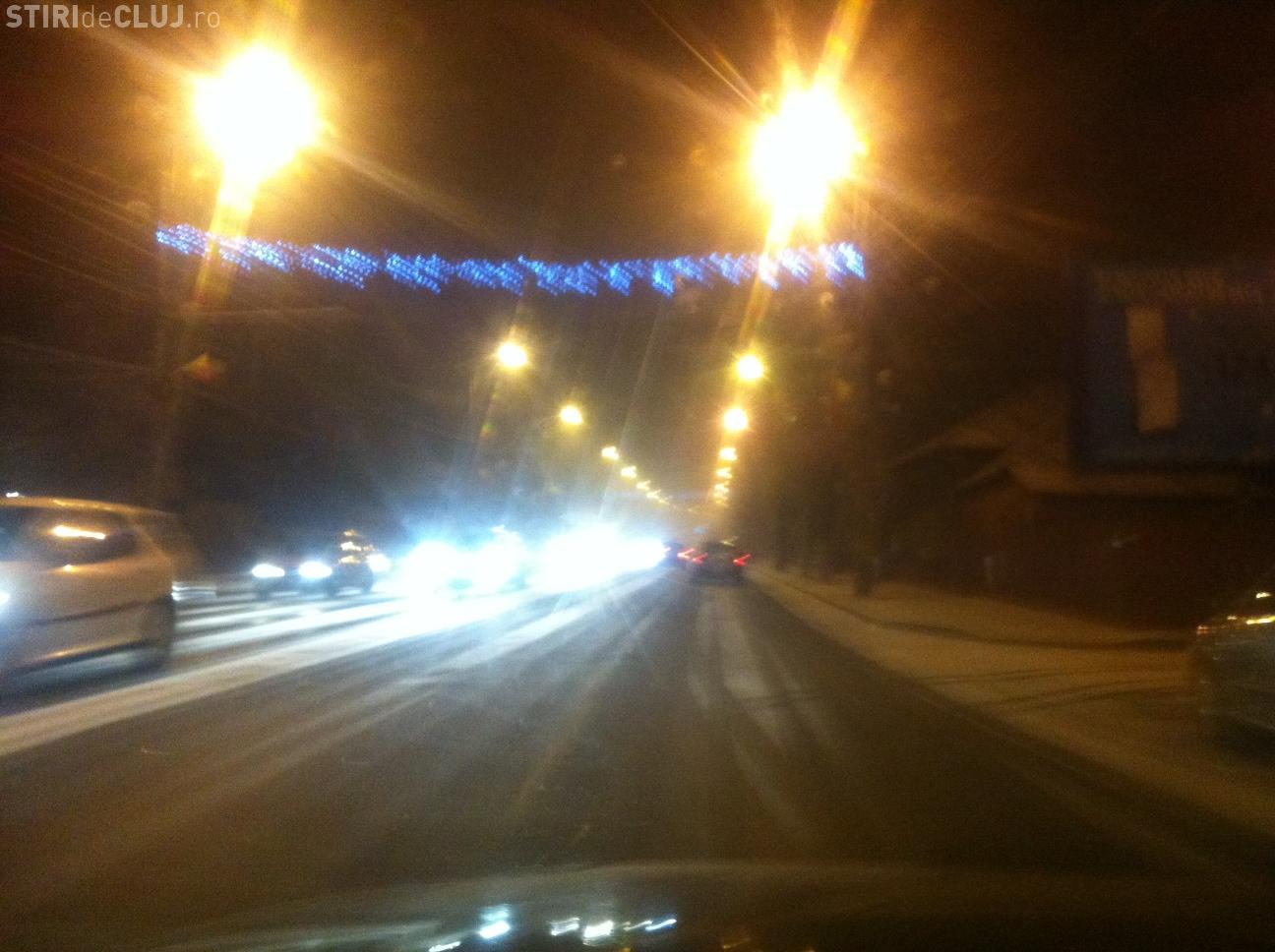 Ceața de la Cluj-Napoca este însoțită de o ninsoare care ”amenință” să dea bătăi de cap șoferilor.