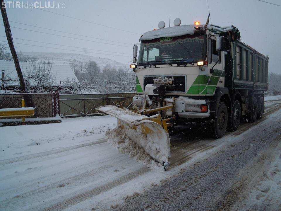 Ninsoarea nu a blocat niciun drum județean din Cluj! S-a intervenit cu utilaje speciale și zeci de tone de material antiderapant