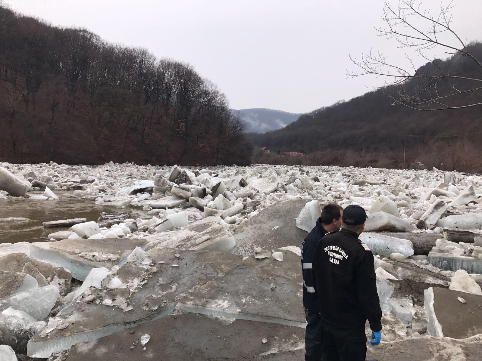 Astfel, s-a constatat necesitatea intervenţiei echipei pirotehnice a ISU Cluj, pentru a executa încă o detonare pentru mobilizarea acumulării de zăpore din albia Râului Arieș, în zona localității Buru.
