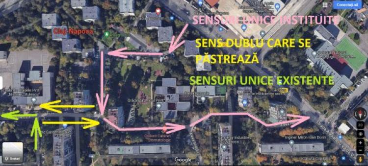 „Primăria municipiului Cluj-Napoca anunță noi reglementări de circulație în cartierul Gheorgheni, în zona aleilor Herculane și Slănic, după cum urmează:
