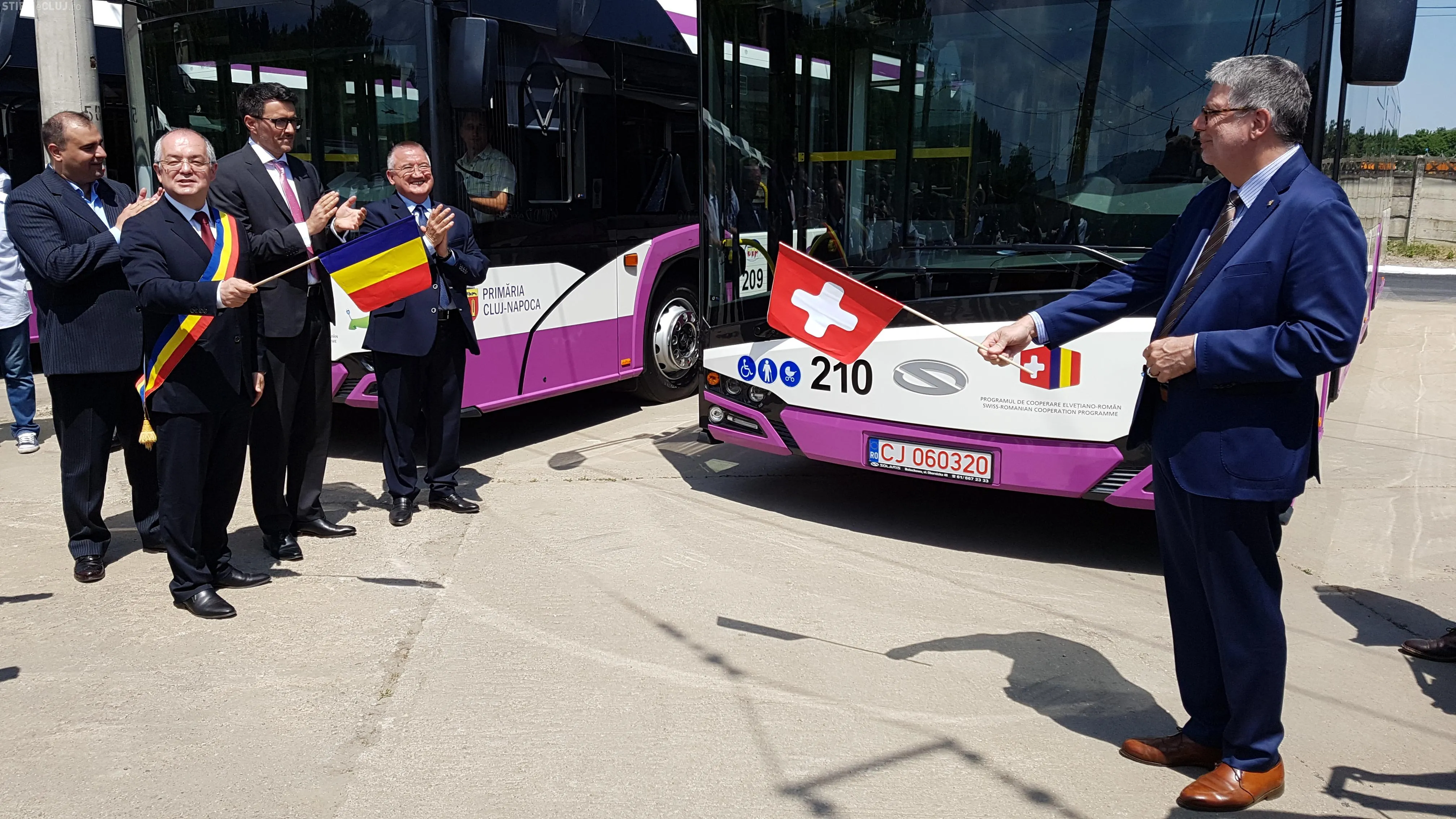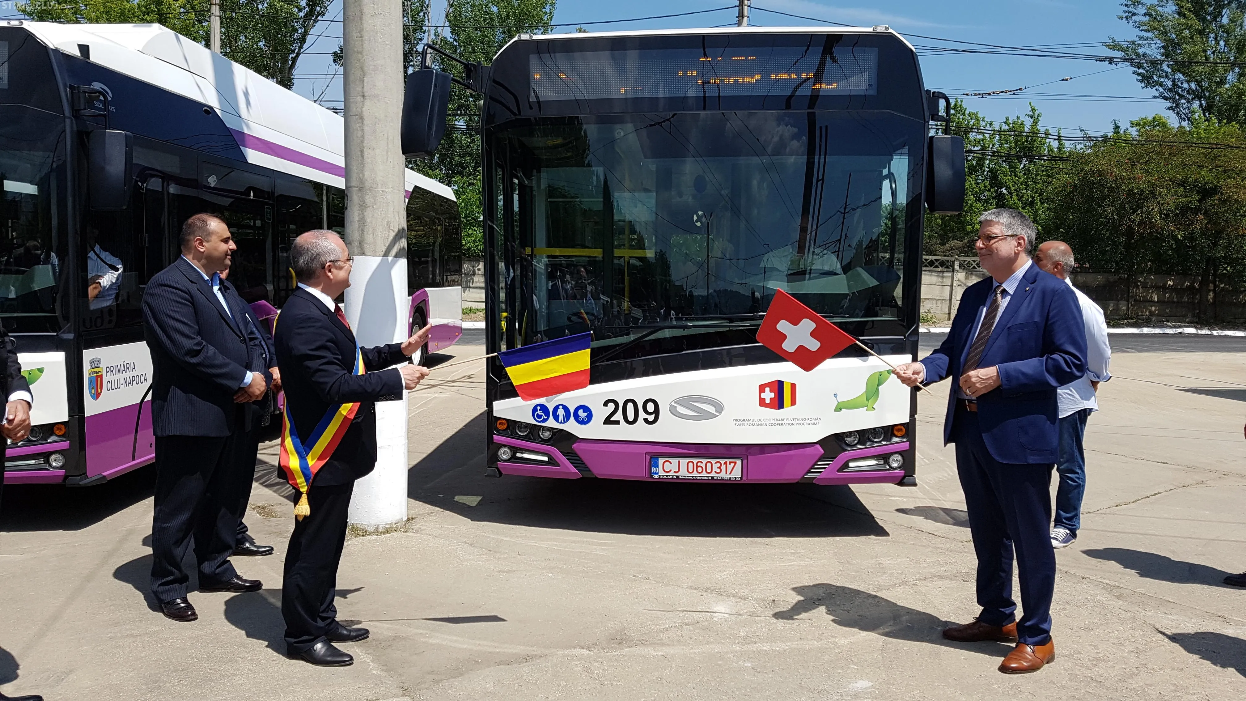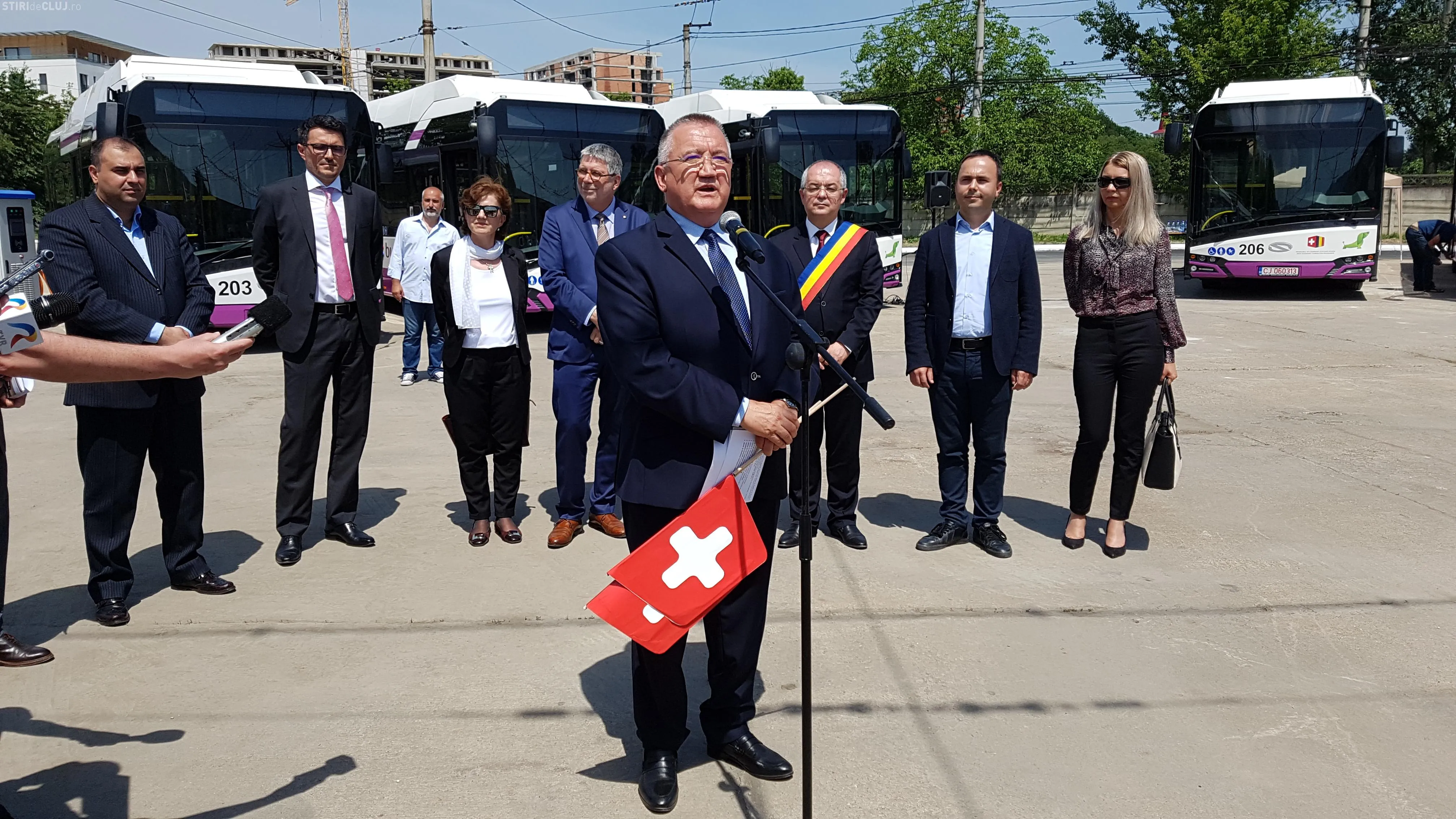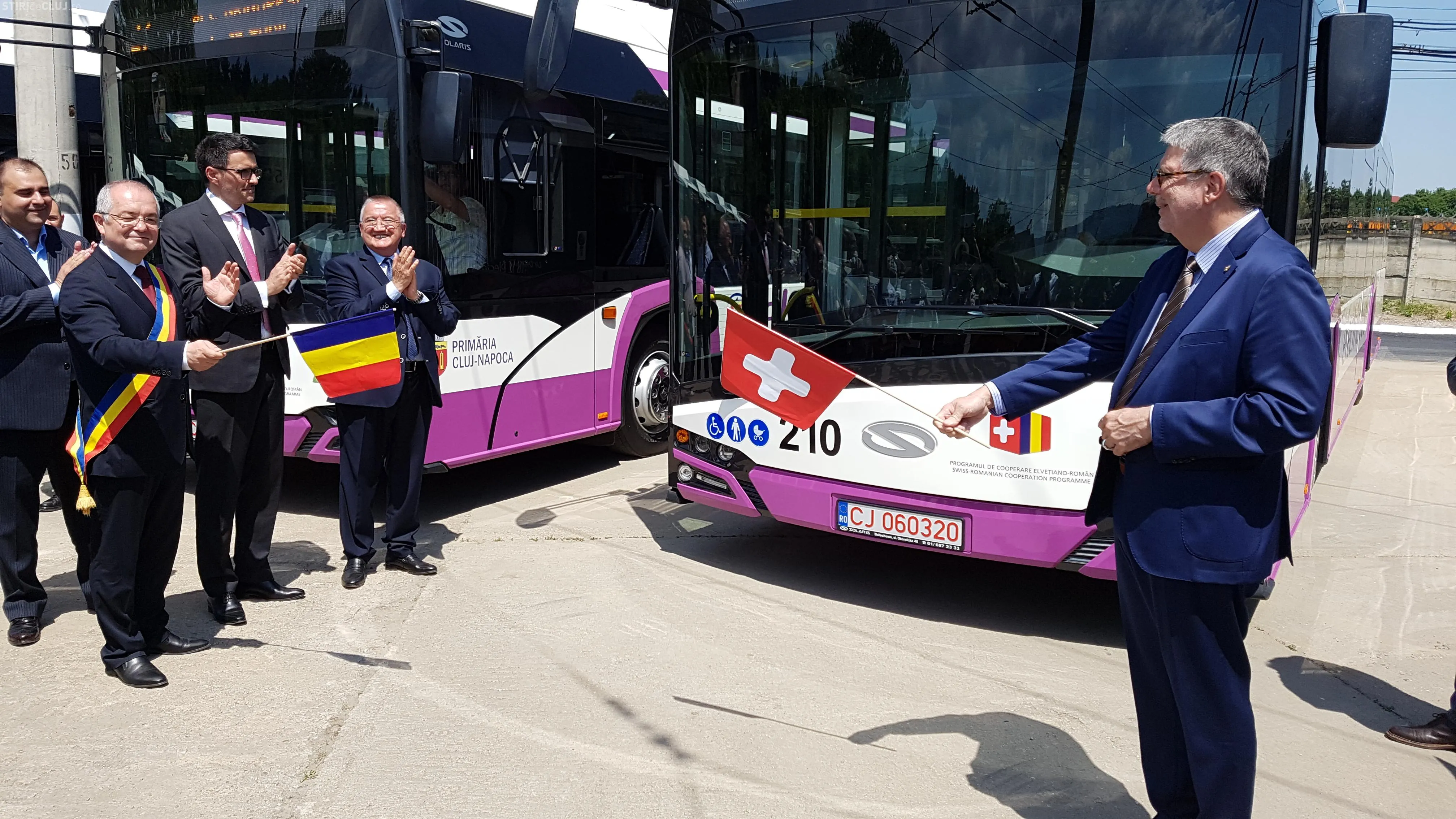 La evenimentul de prezentare a autobuzelor este prezent și Ambasadorul Elveției în România, Excelența Sa Dl. Urs Herren, care a precizat că felicită Clujul și că este invidios că în Elveția nu este Wi-Fi în mijloacele de transport în comun.