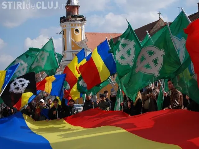 Noua Dreapta a protestat la Cluj fata de regionalizarea Romaniei - VIDEO - Galerie FOTO