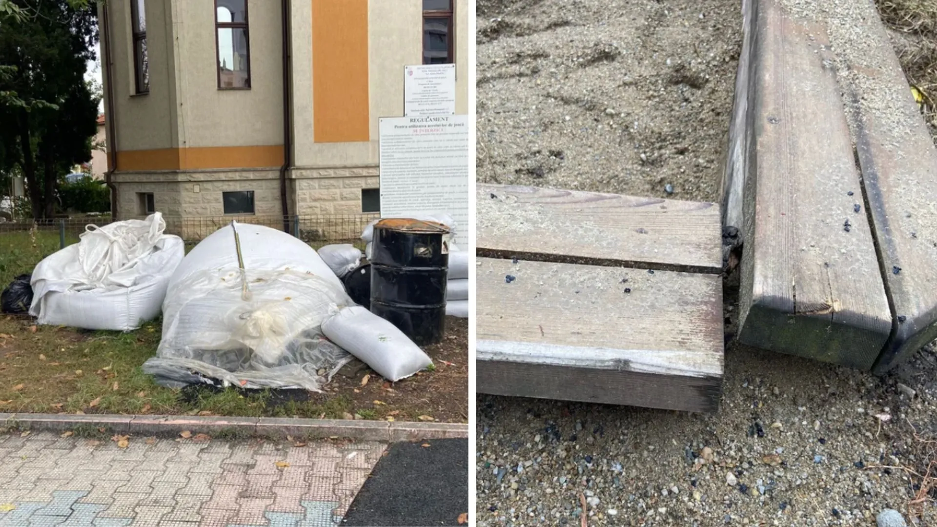 Mai mult, gropa cu nisip a fost afectată de lucrări, fiind ruptă, cu cuie ieșite, iar spațiul din jurul acesteia nu a fost nivelat corespunzător, reprezentând un pericol de împiedicare pentru copii.