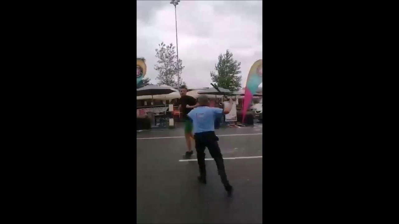 În vederea aplanării situației conflictuale a intervenit un agent de pază aflat în serviciu, iar din imaginile apărute în spațiul public, a reieșit faptul că acesta, împreună cu tânărul de 20 de ani, și-ar fi aplicat lovituri reciproc.
