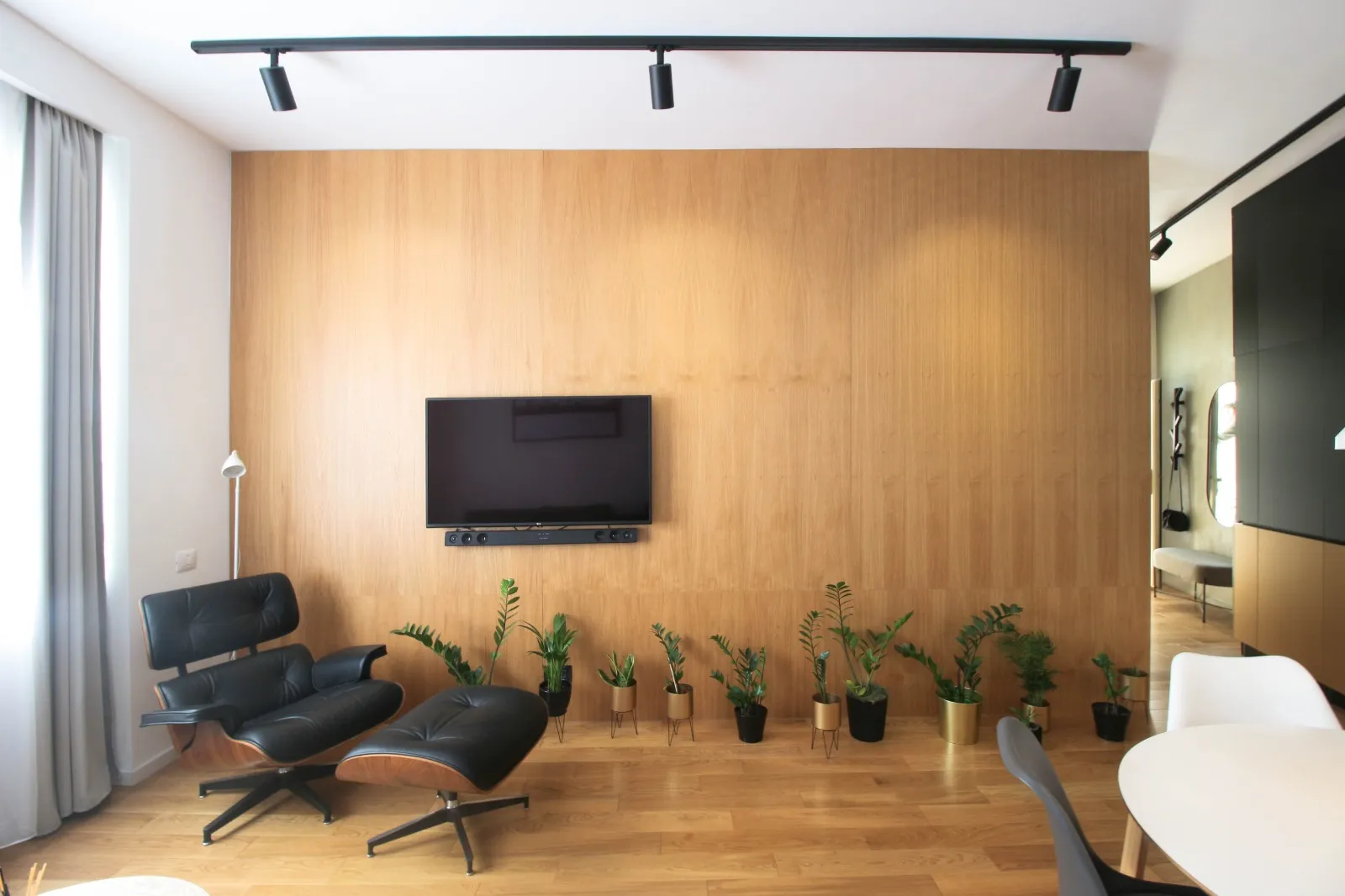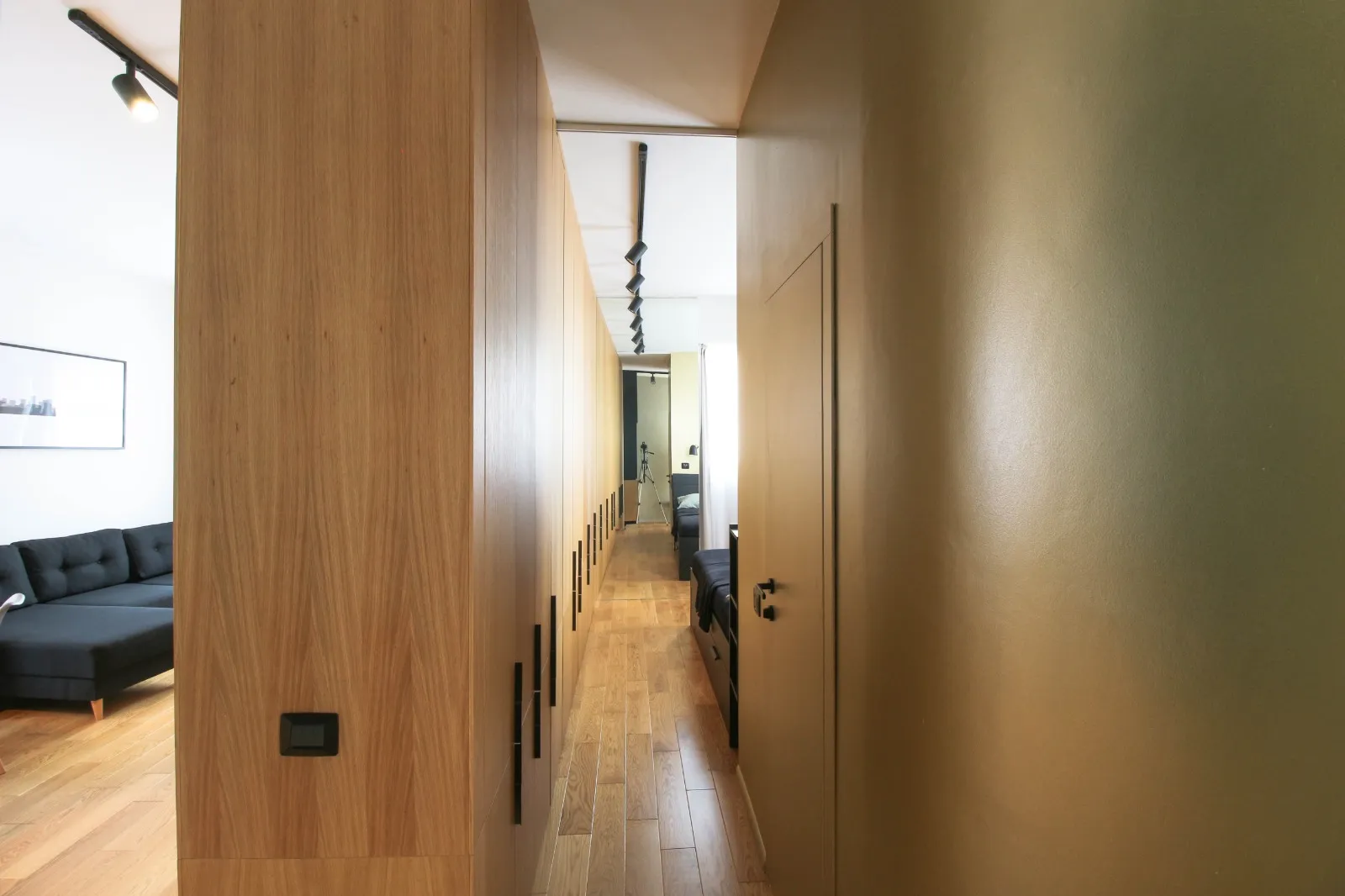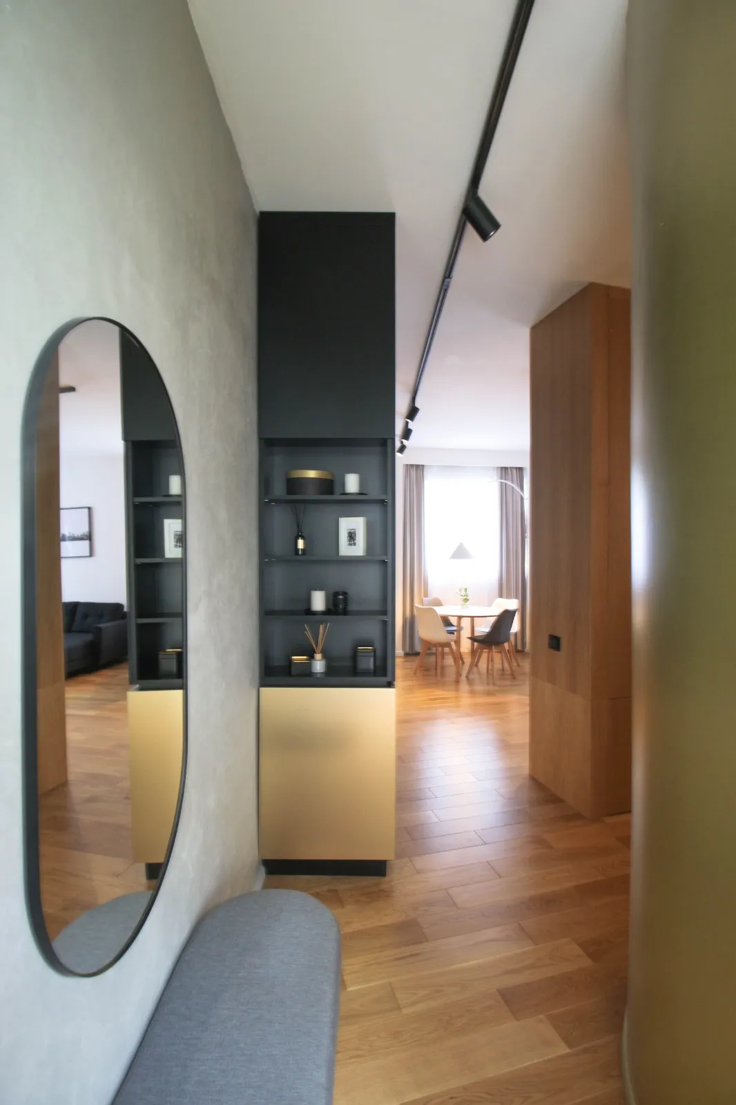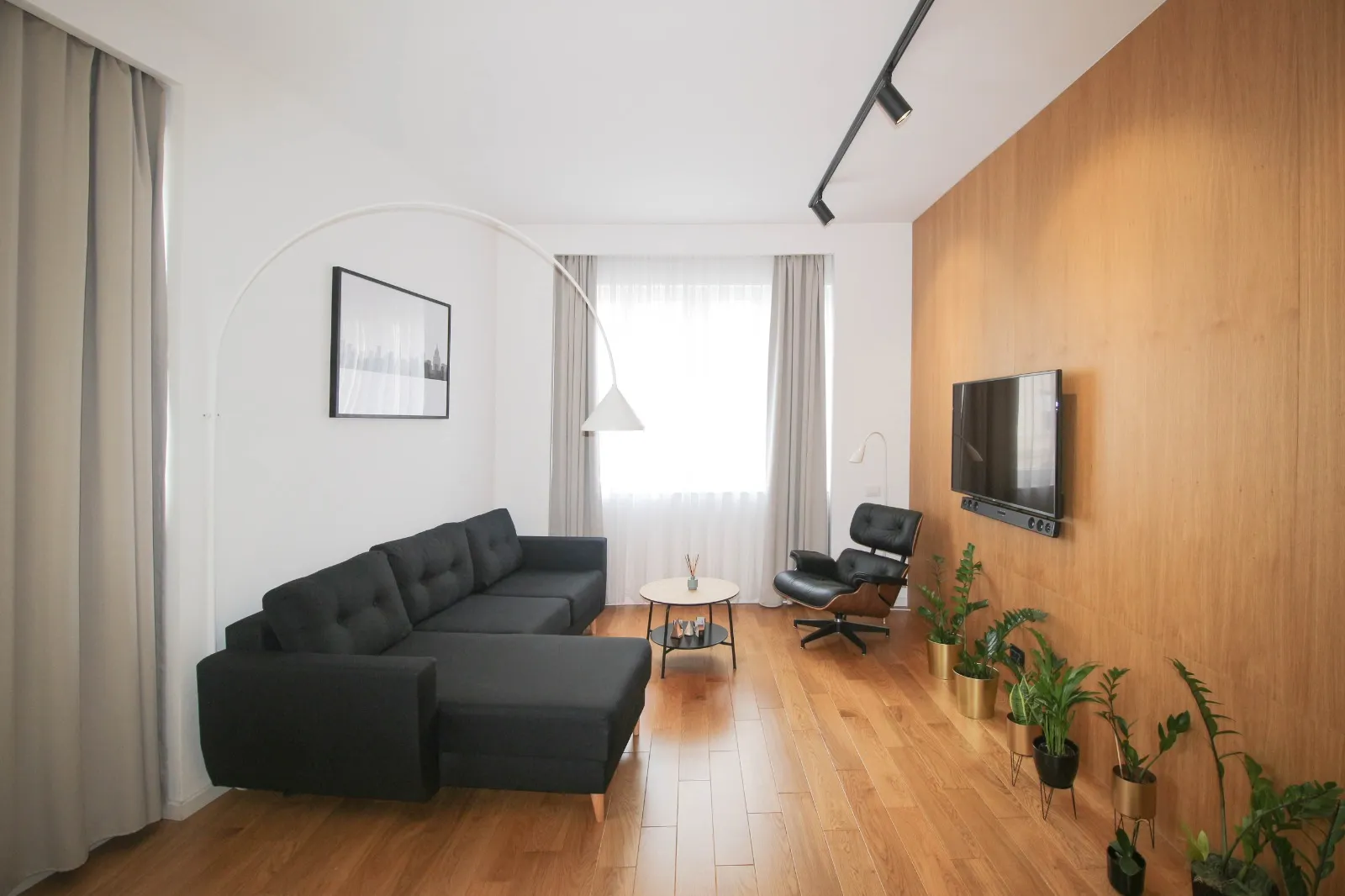 Apartamentul este dotat, utilat și mobilat pentru condiții premium: încălzire în pardoseală (centrală proprie), aer condiționat, jaluzele black-out în dormitor, TV + soundbar + subwoofer, electrocasnice încorporate în mobilier (mașină de spălat rufe cu uscător, mașină de spălat vase, plită și cuptor electrice, combină frigorifică).