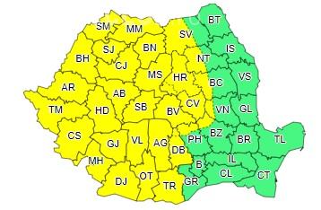 Meteorologii de la ANM au emis, marți după-amiază, un avertisment de tip cod galben de vreme rea, ce va afecta mai mult de jumătate din țară.
