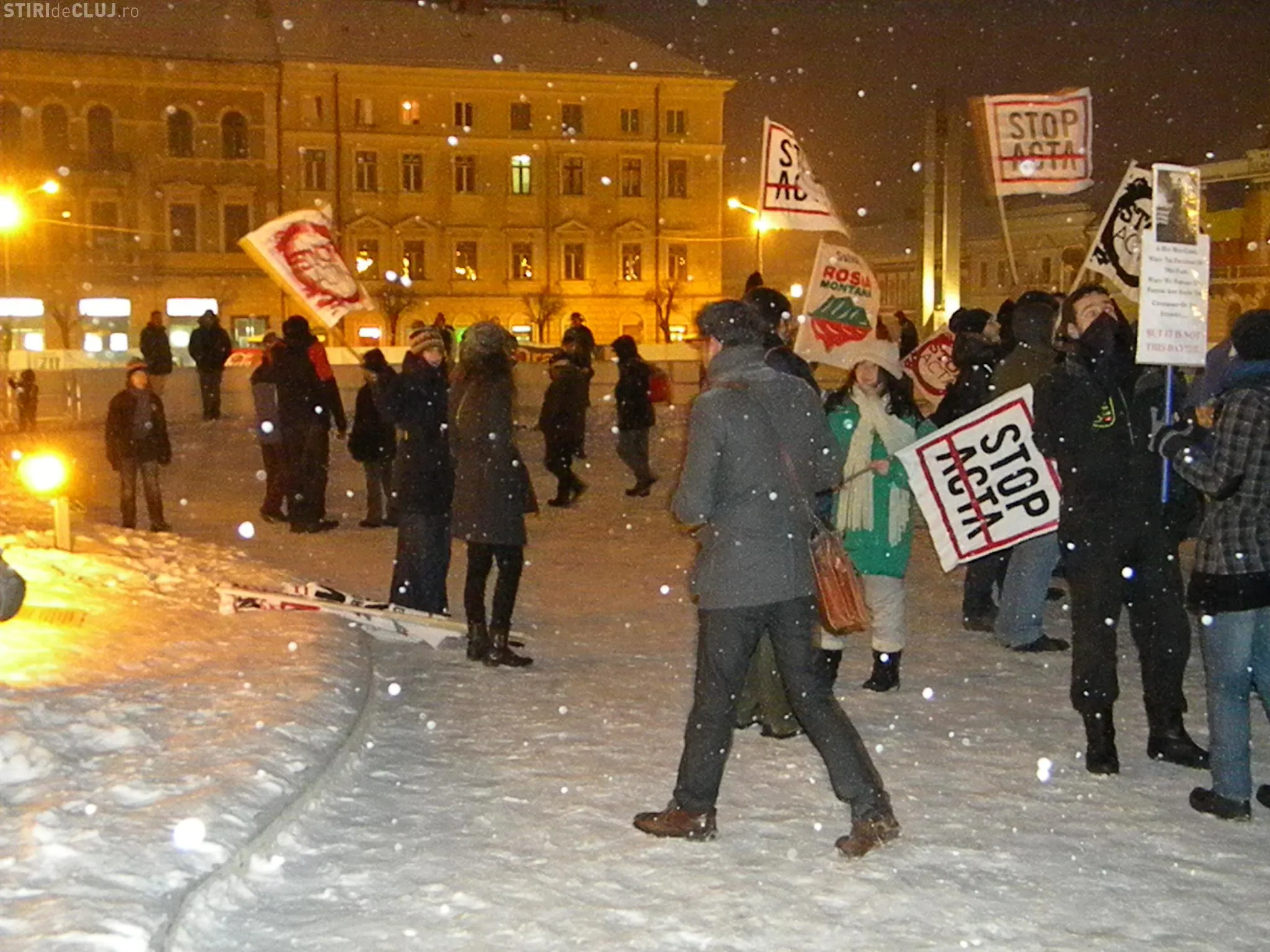 De la circa 2.000 sambata, numarul protestatarilor anti ACTA a ajuns duminica la mai putin de 20. Dintre acestia multi erau ecologisti Rosia Montana, care pentru doua zile au imbratisat o noua cauza.