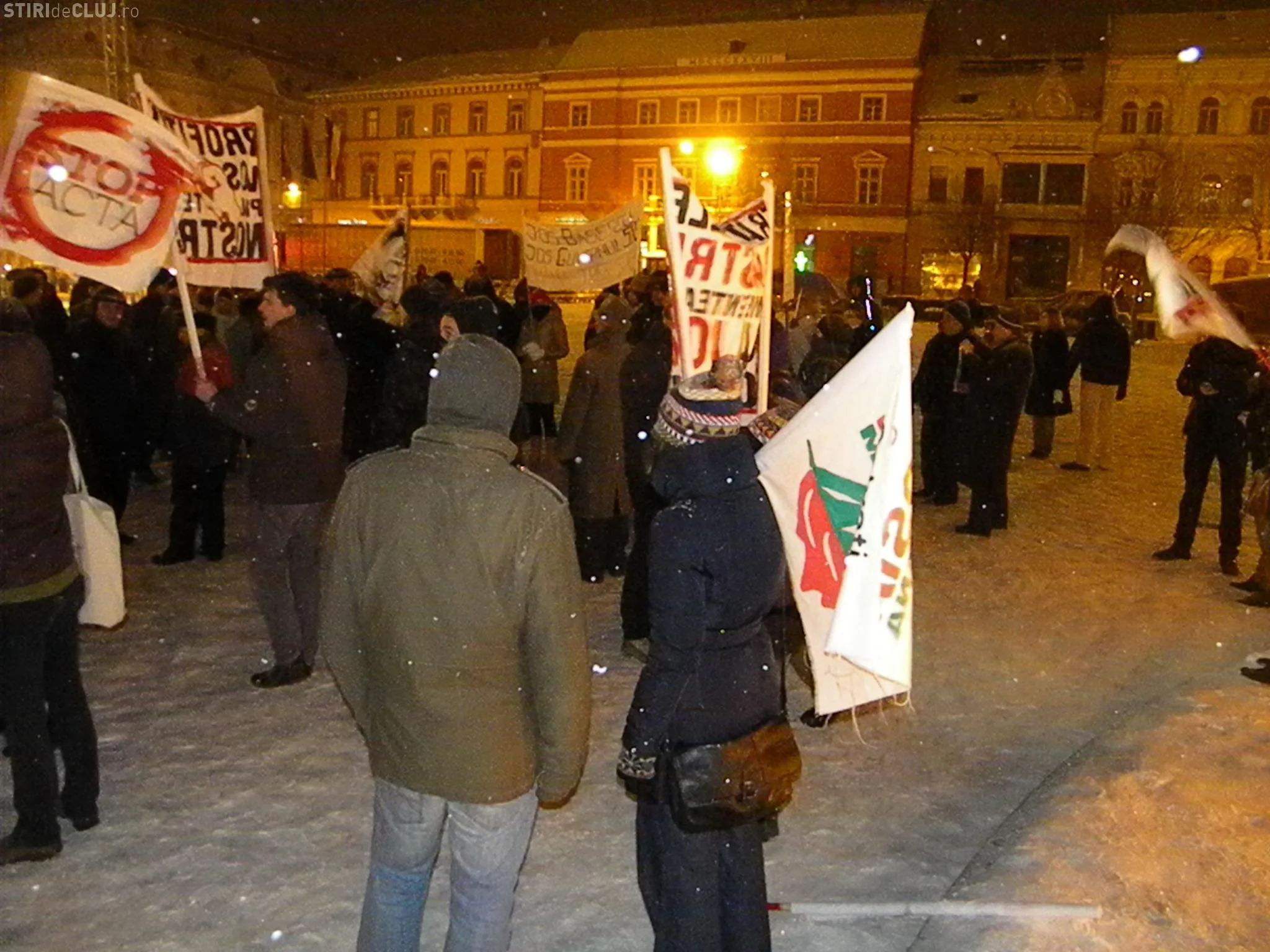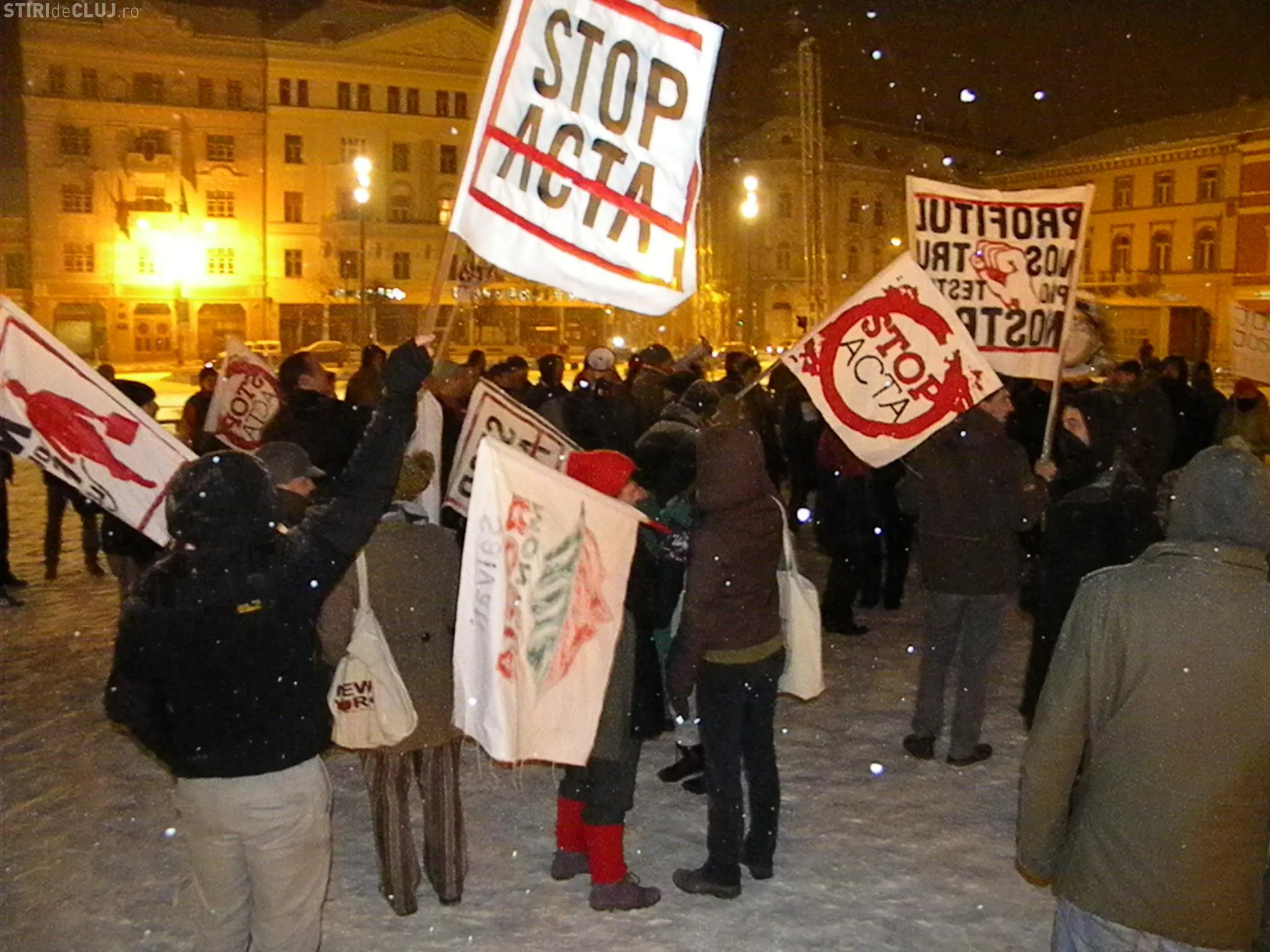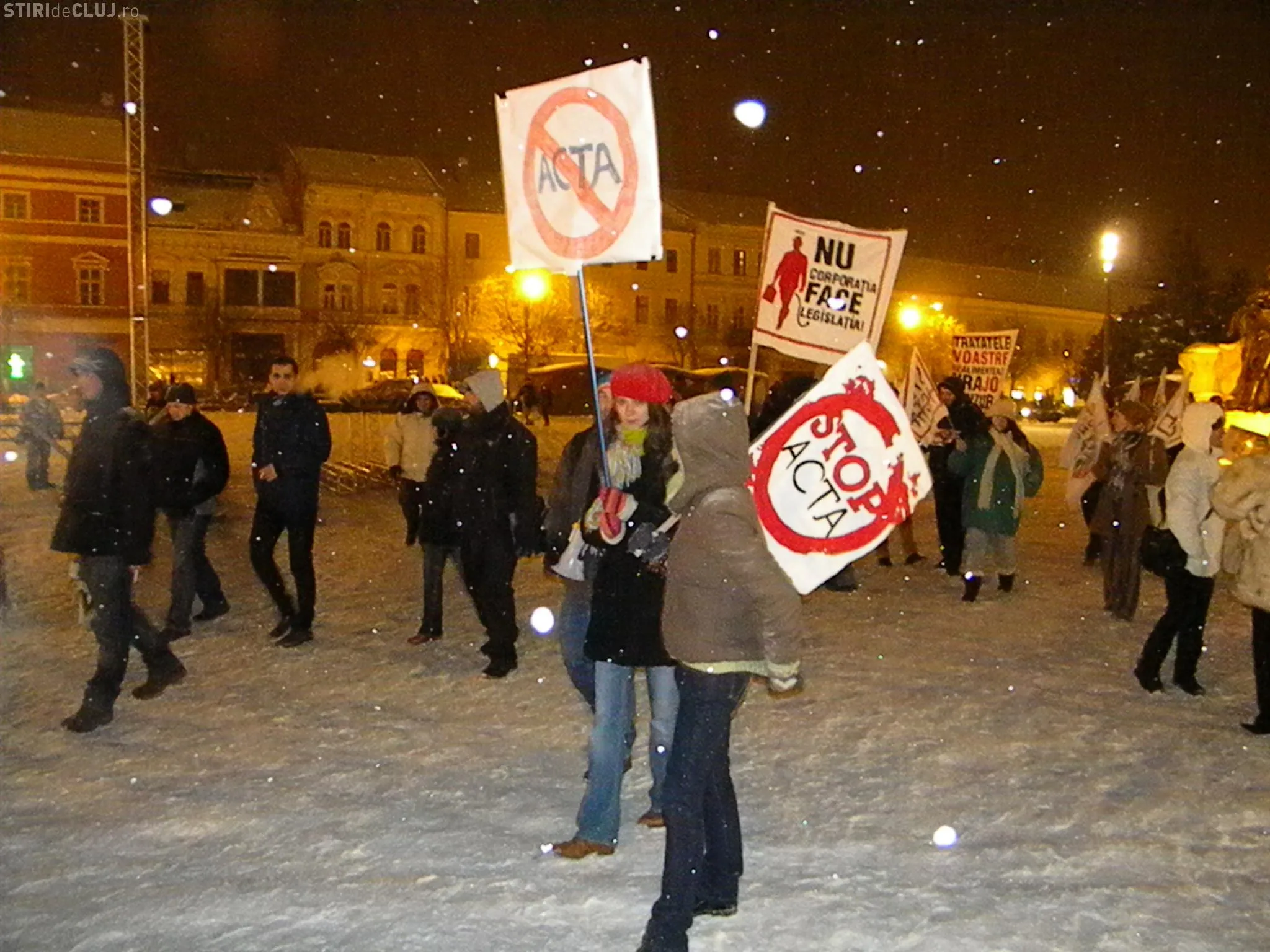 Tinerii care militeaza impotriva acordului comercial de combatere a contrafacerii, ACTA, si-au unit "fortele" cu militantii "veterani" din Piata Unirii, care protesteaza seara de seara impotriva presedintelui Traian Basescu.