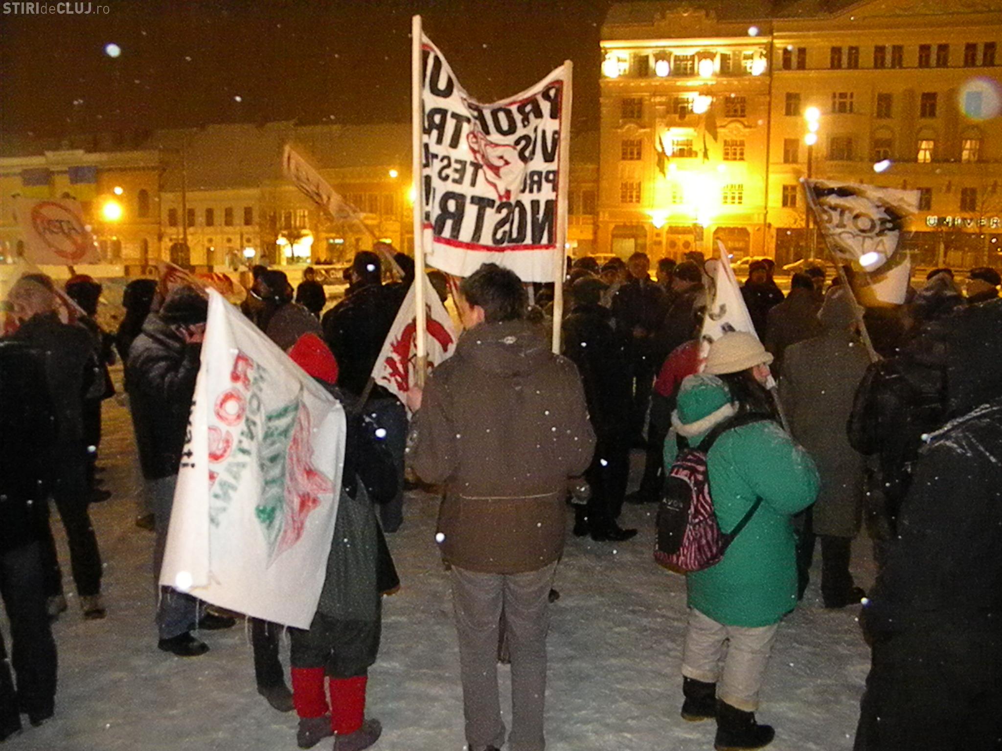 Numai 50 de oameni s-au strans la protestul anti ACTA si anti Basescu din Piata Unirii FOTO