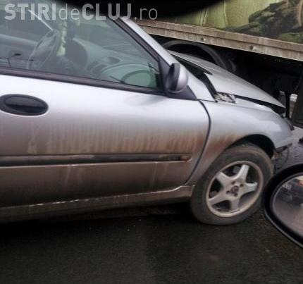 Accidentul nu s-a soldat cu victime, ci numai cu pagube materiale. Șoferul unui autoturism a intrat sub remorca unui TIR care ieșea din parcarea Metro, anunță newscluj.