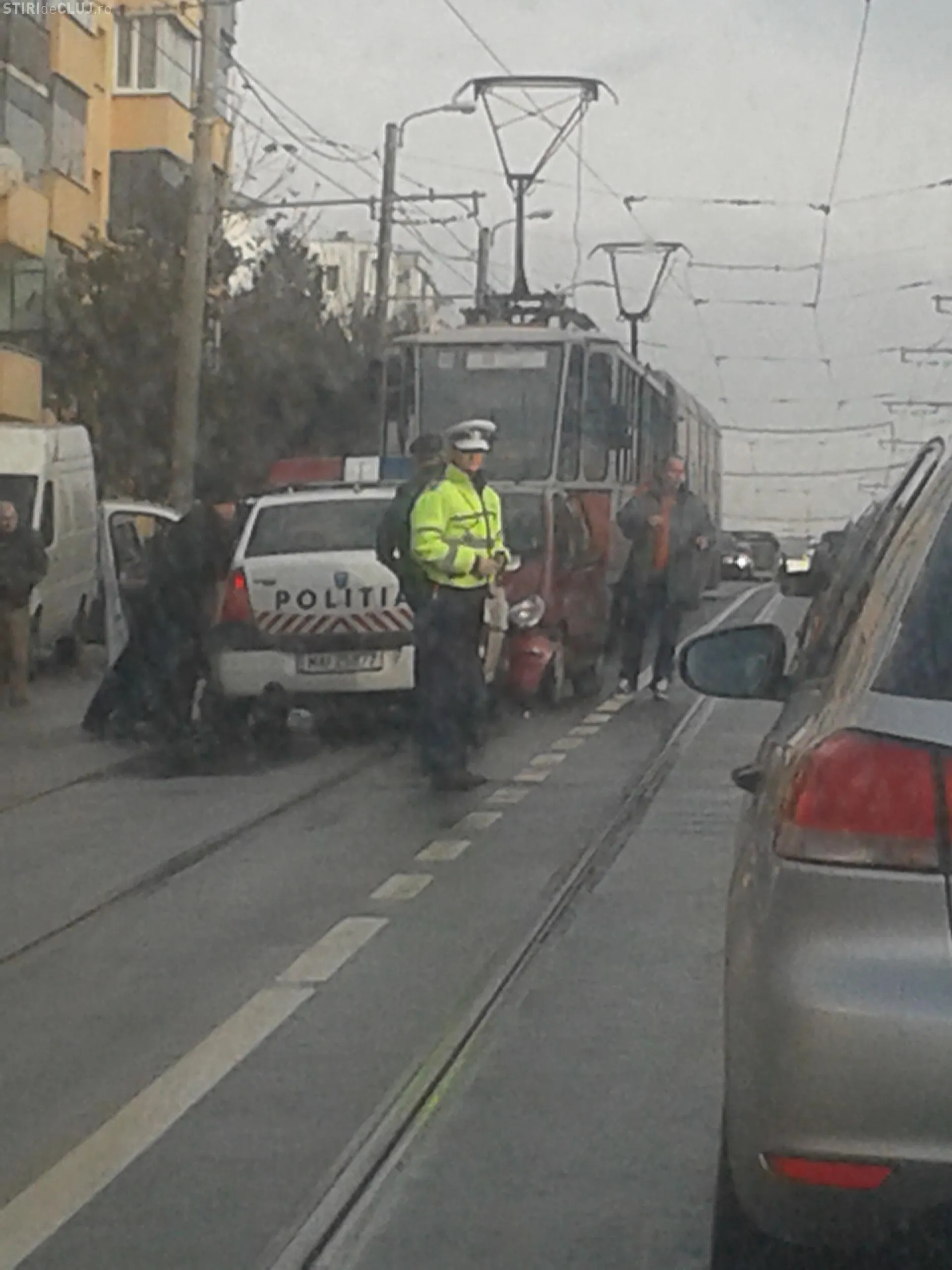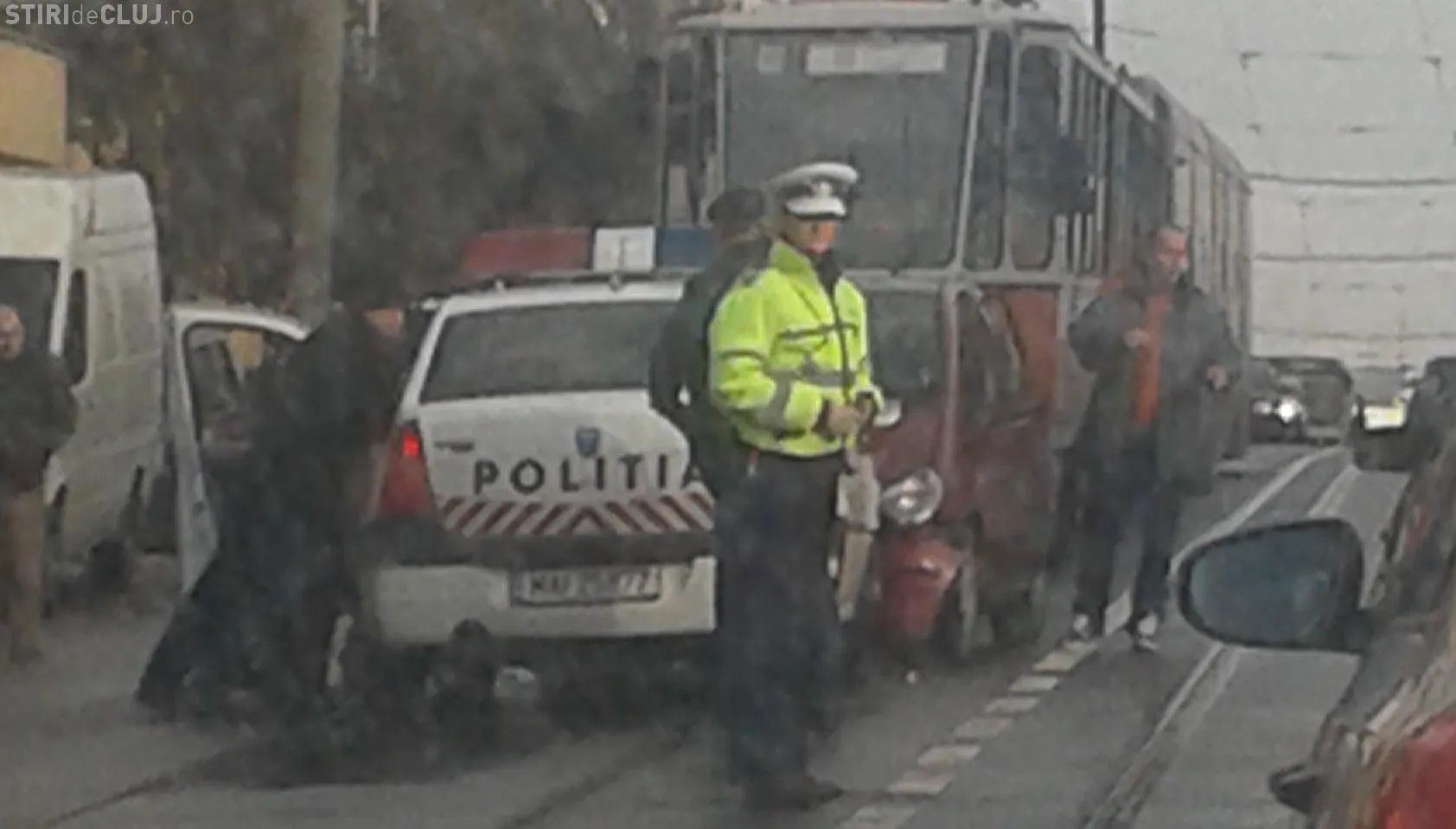 O altă mașină de Poliție făcută PRAF în Mănăștur, într-un accident pe linia de tramvai - FOTO