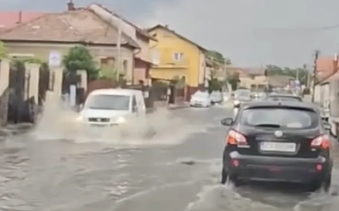 Strada Maramureșului din Cluj-Napoca, din nou sub ape după ploaia torențială de azi. „Este pește?”, întreabă ironic un clujean