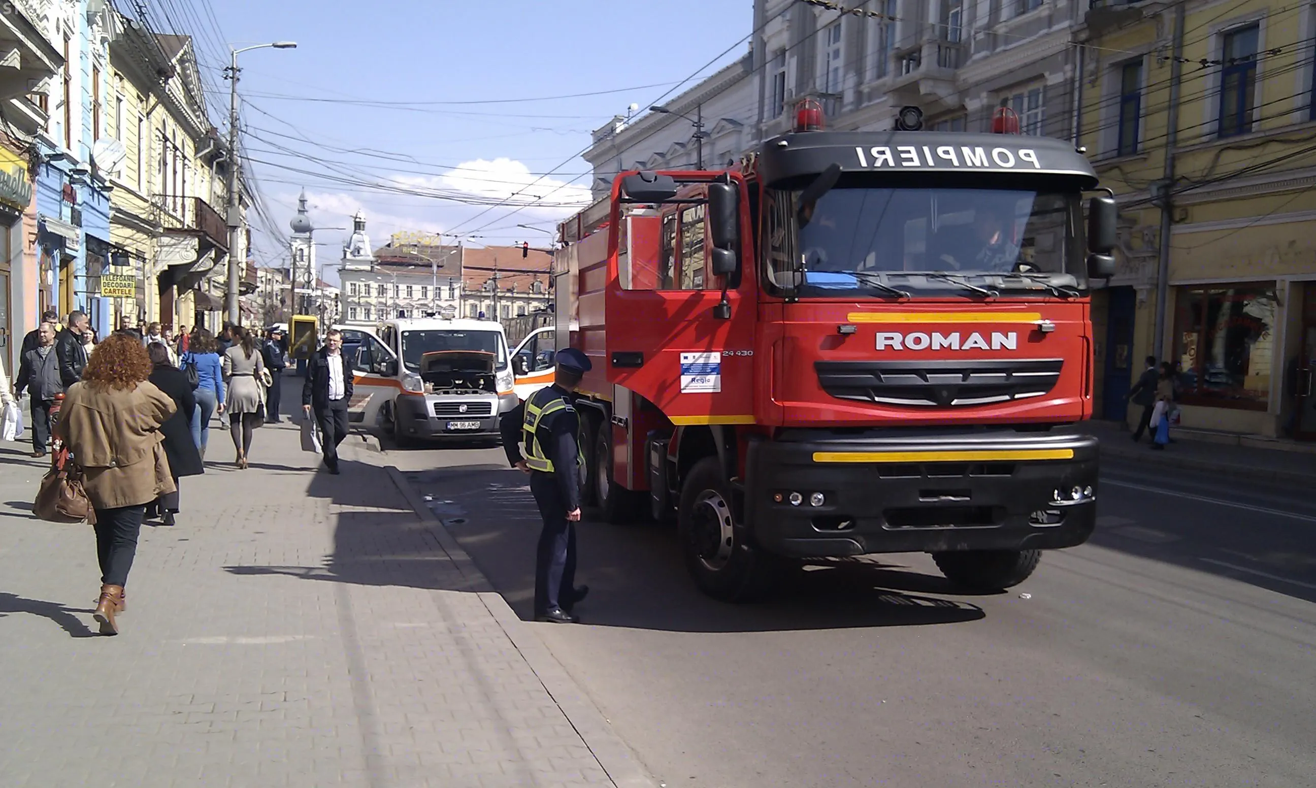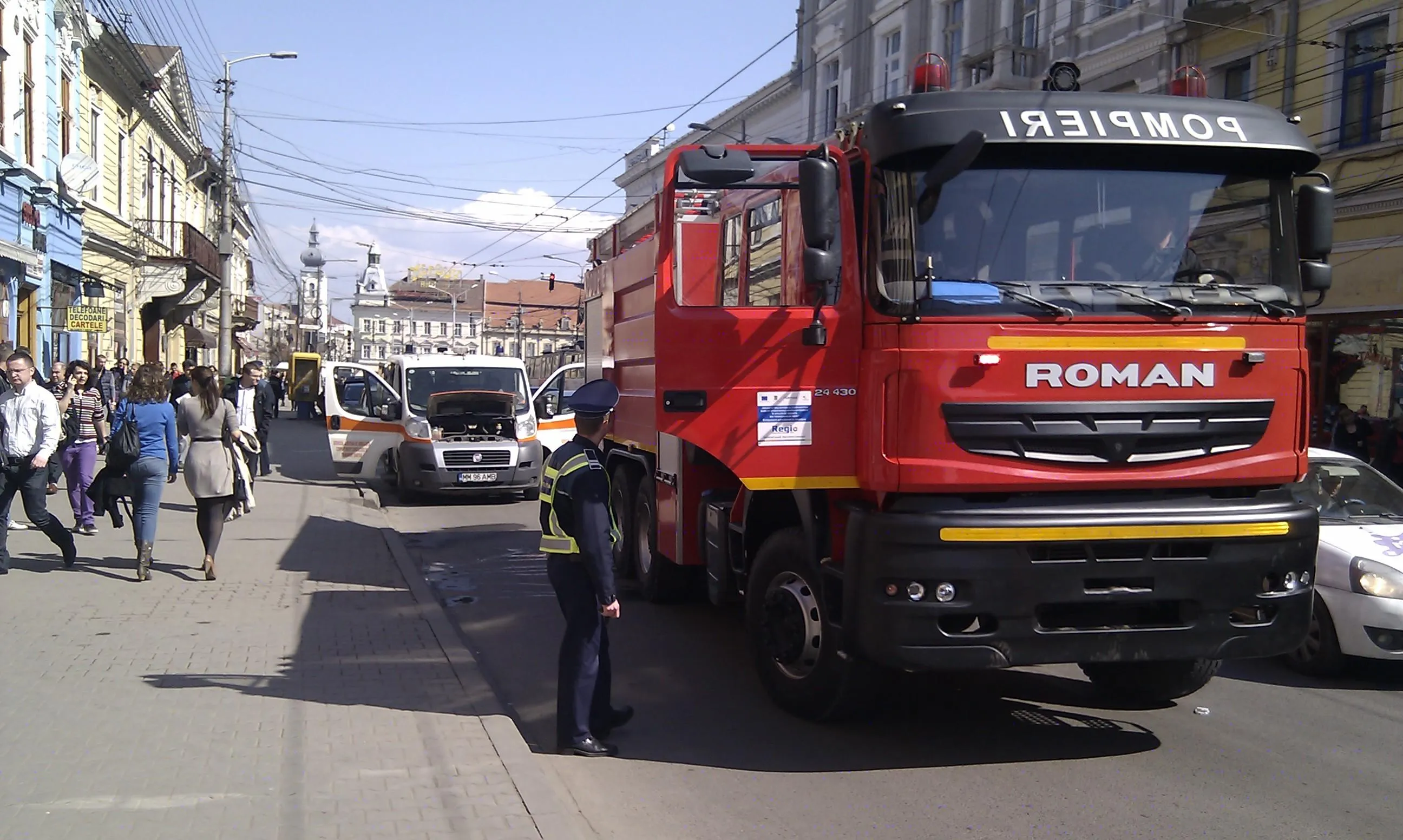 O ambulanta, care venea din judetul Maramures si transporta un pacient la o clinica din Cluj-Napoca, s-a aprins pe strada Memorandumului, fiind nevoie de interventia pompierilor.