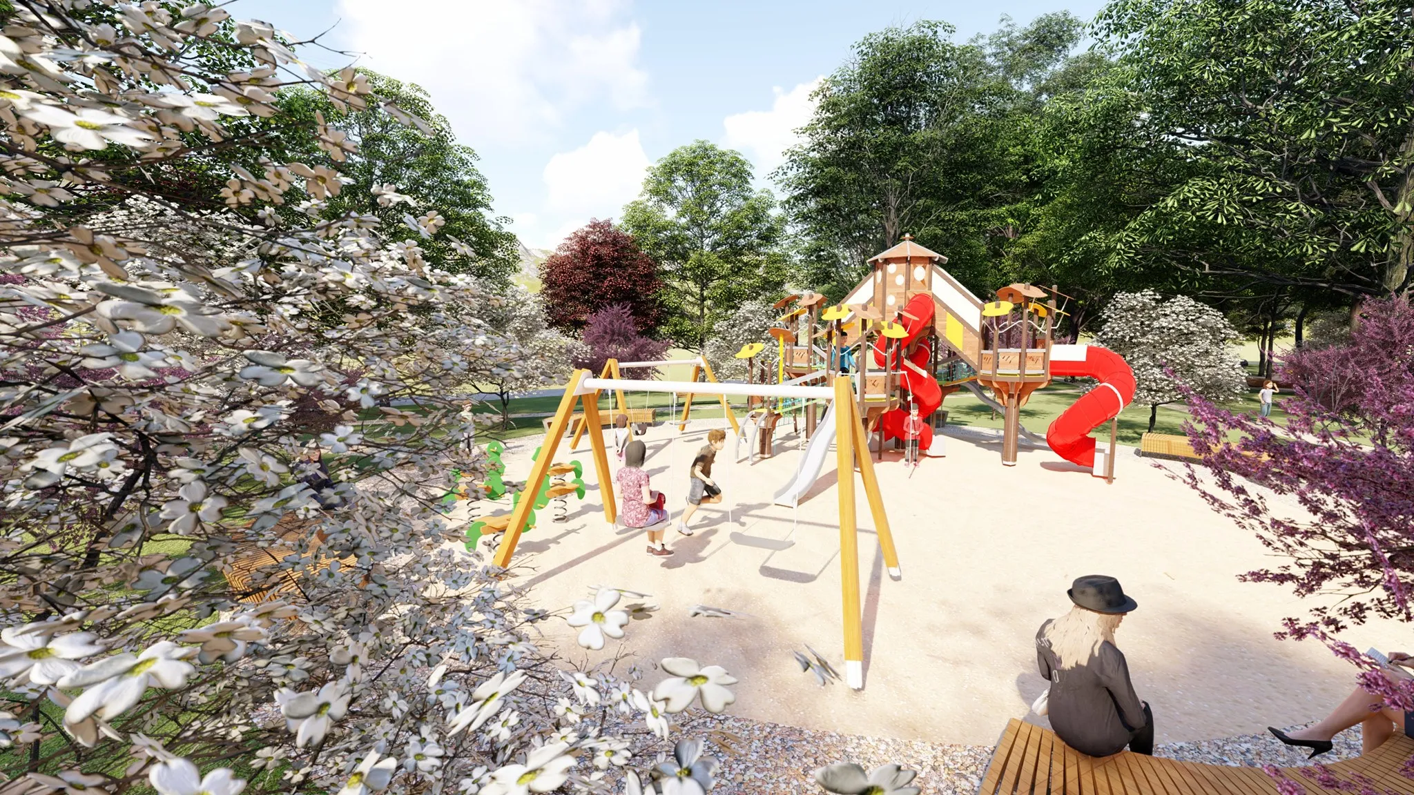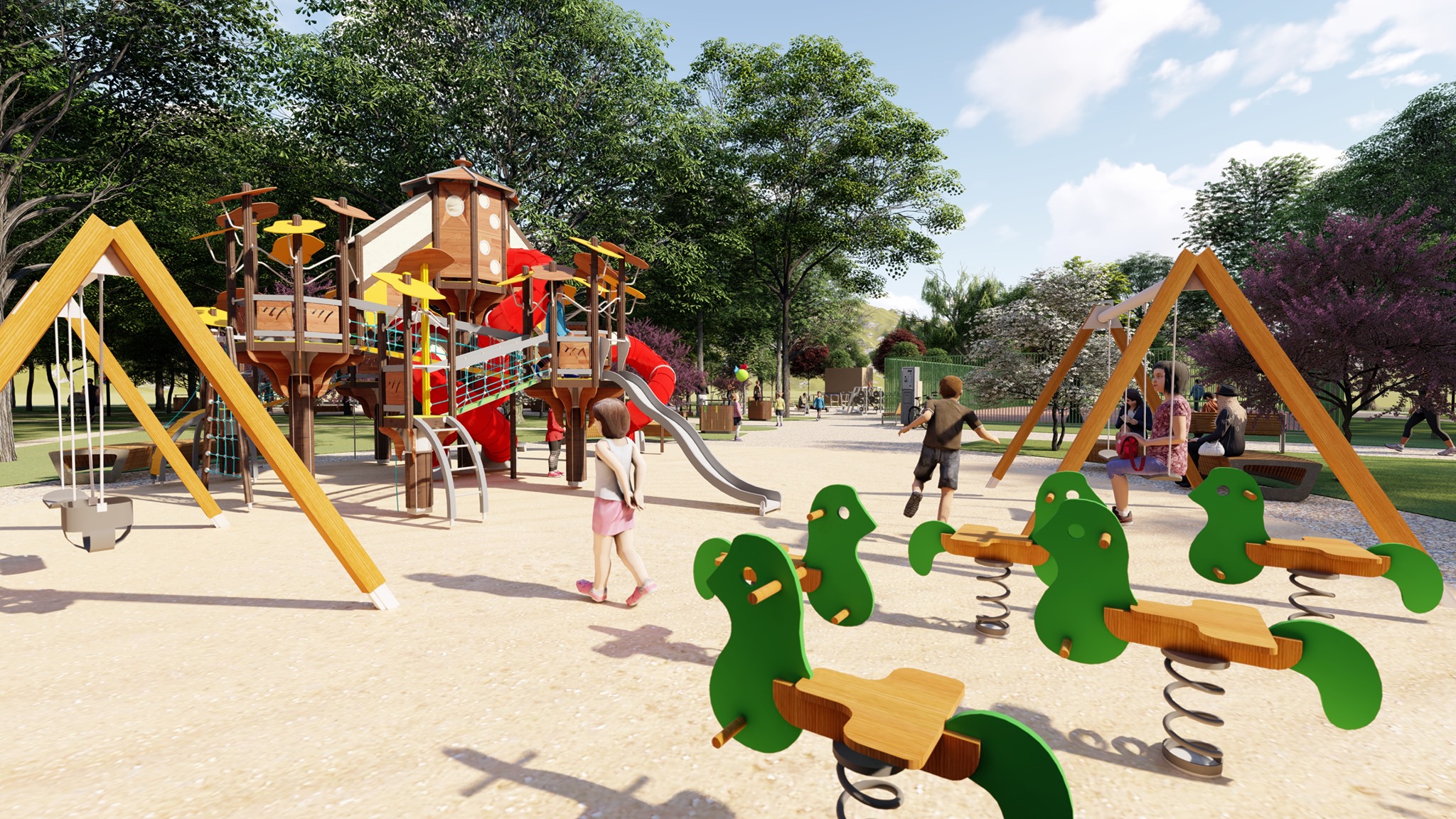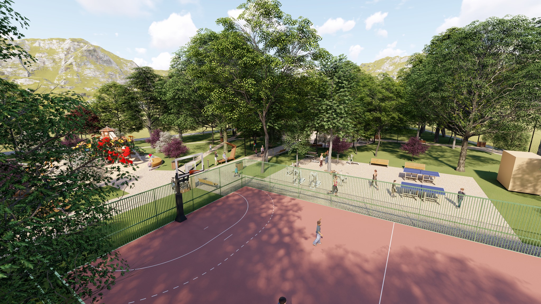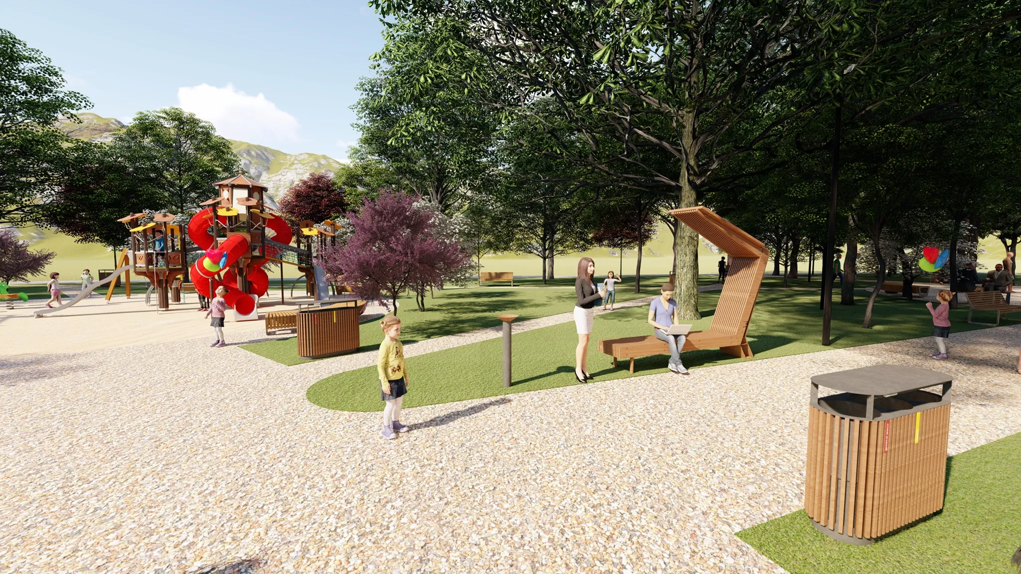 - zonă joacă pentru copii – 1 ansamblu de joacă mare, 2 leagăne, 6 figurine;