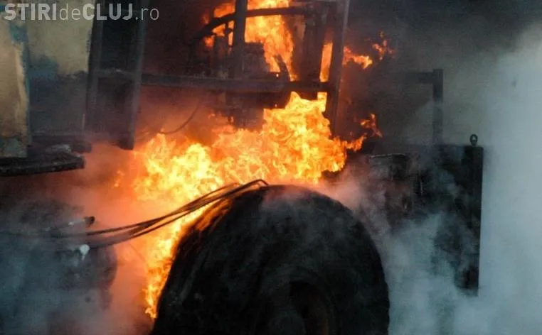 Pompierii clujeni anunță că nu a fost afectată cabina autovehiculului. Incendiul a fost provocat de o defecțiune tehnică în zona roților.