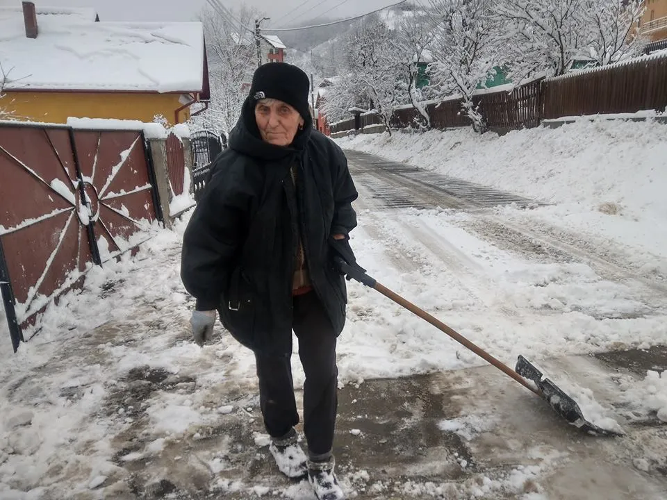 O bătrânică a pus mâna pe lopată și a deszăpezit drumul. Acesta ar trebui să fie Clujul - FOTO