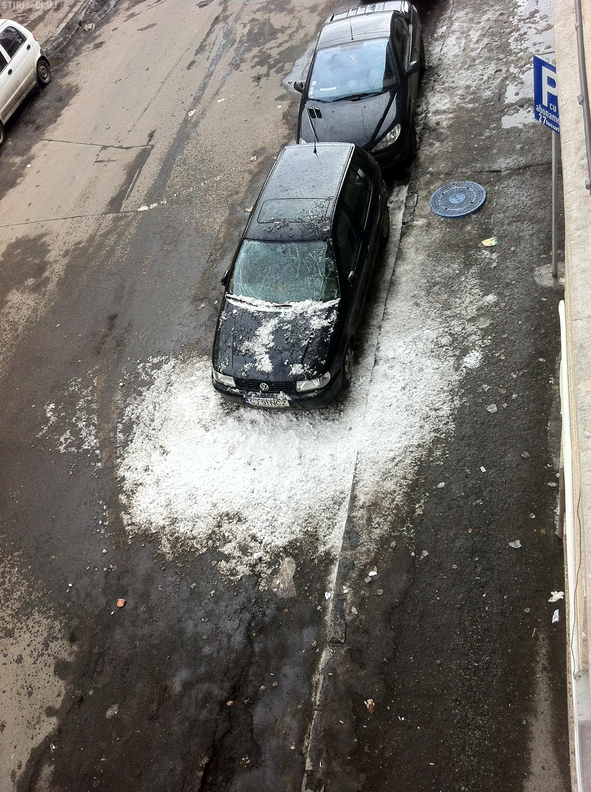 Masina distrusa de zapada in centrul Clujului FOTO si VIDEO EXCLUSIV