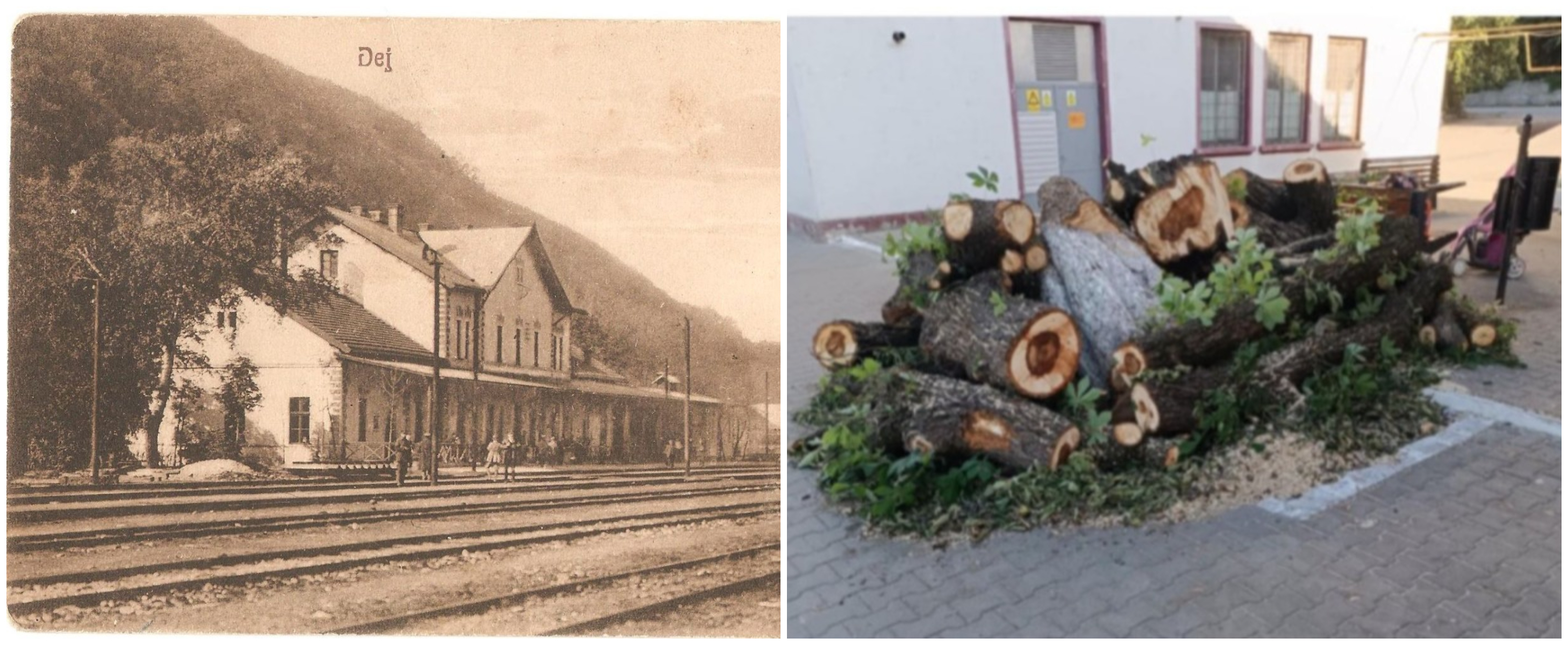 În fotografii vechi cu Gara Dej Călători, copacul este mereu acolo, martor al schimbărilor prin care a trecut țara și orașul: de la perioada monarhică, la regimul comunist, Revoluția din ’89, pandemie, până azi. A fost acolo când trenurile ajungeau cu aburi, când garniturile veneau cu refugiați sau cu navetiști.
