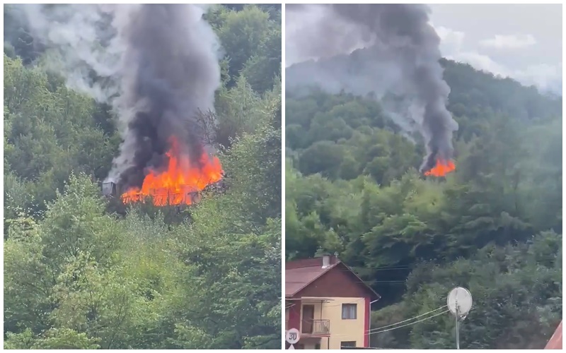 O cabană a ars la o torță la Someșu Rece - VIDEO