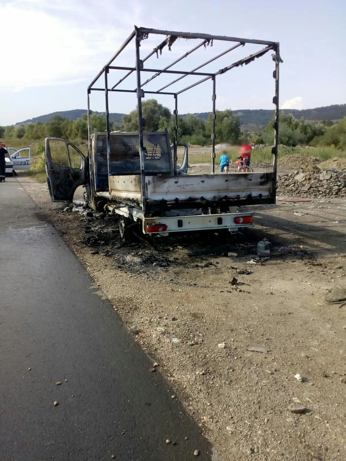Pompierii au acționat timp de 20 de minute pentru stingerea flăcărilor, însă autoutilitara a fost distrusă în totalitate.