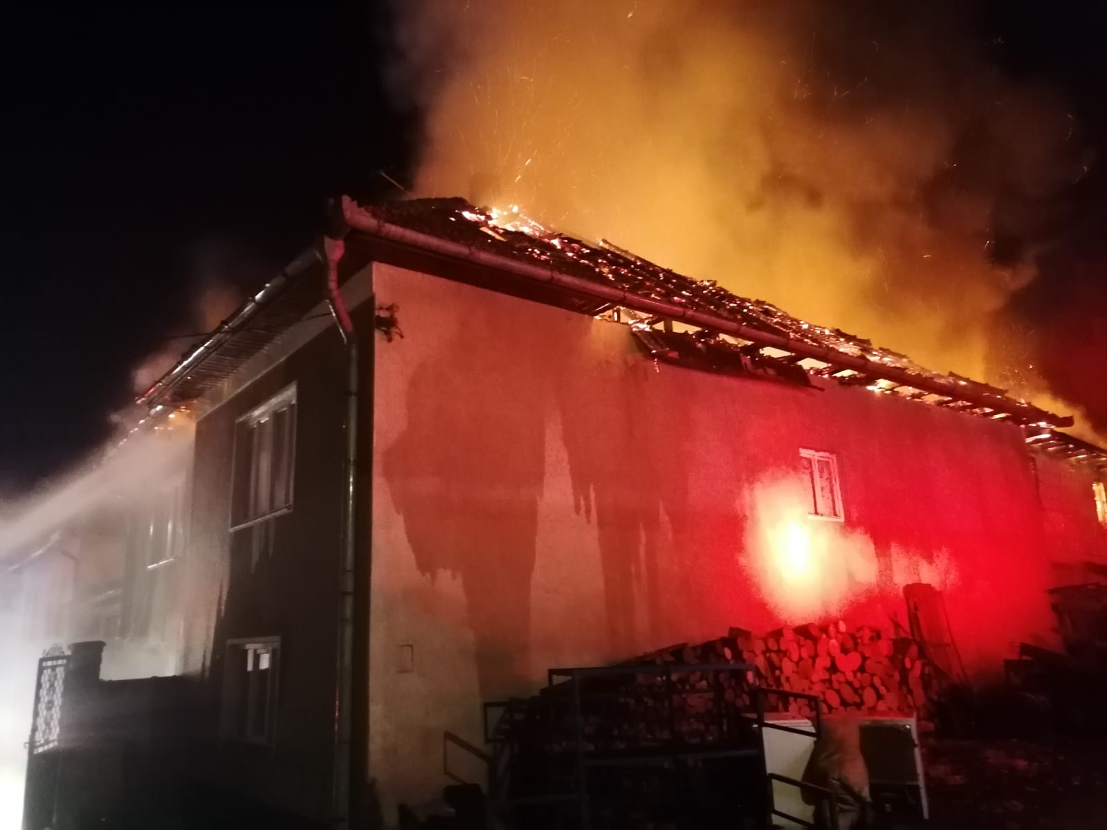 Pompierii au găsit acoperișul casei, cu o suprafață de cca 150 mp, cuprins în totalitate de flăcări și locatarii ieșiți din aceasta.
