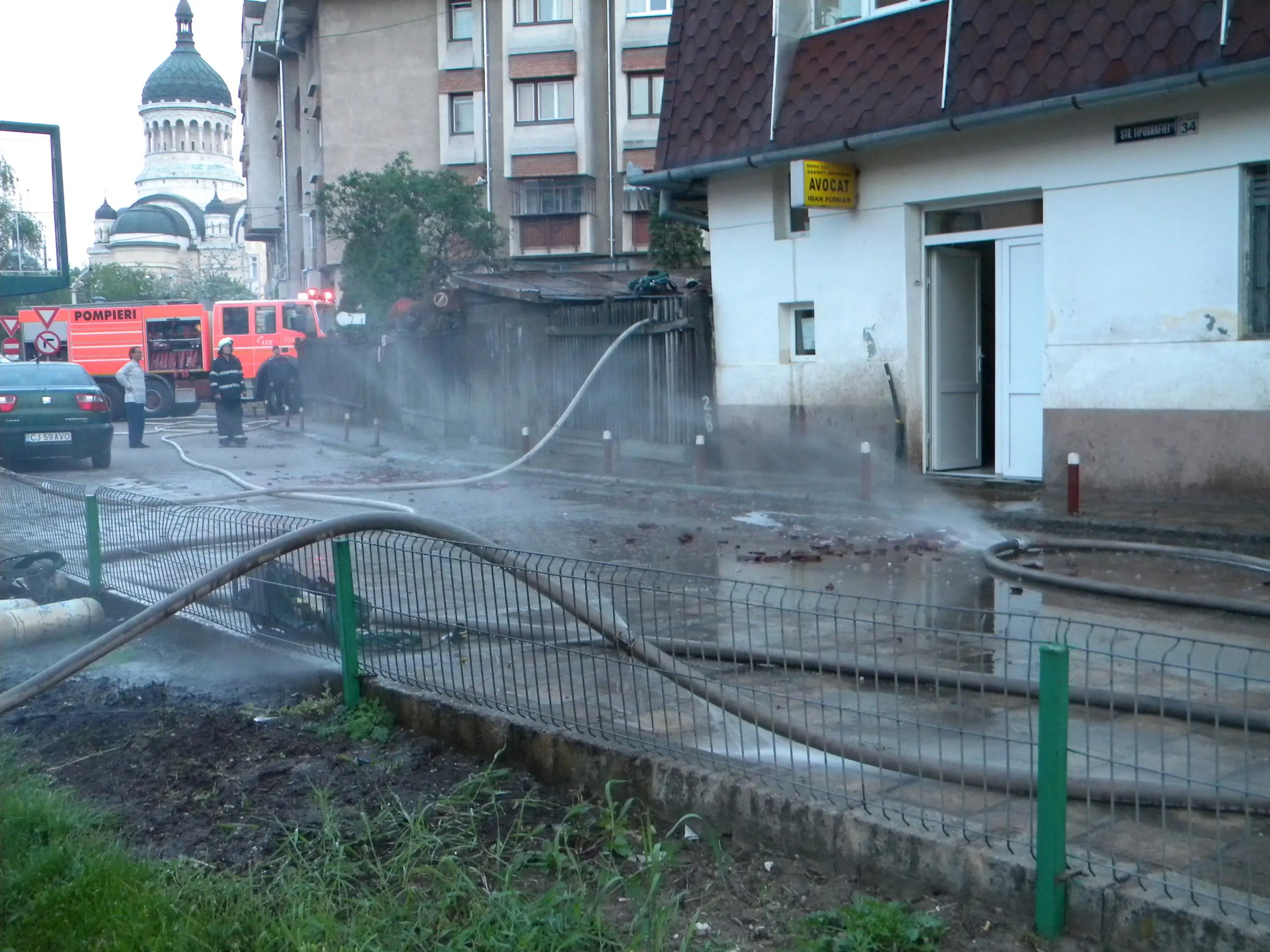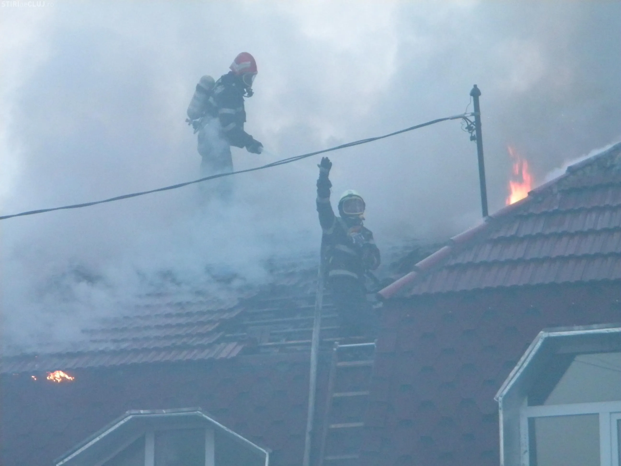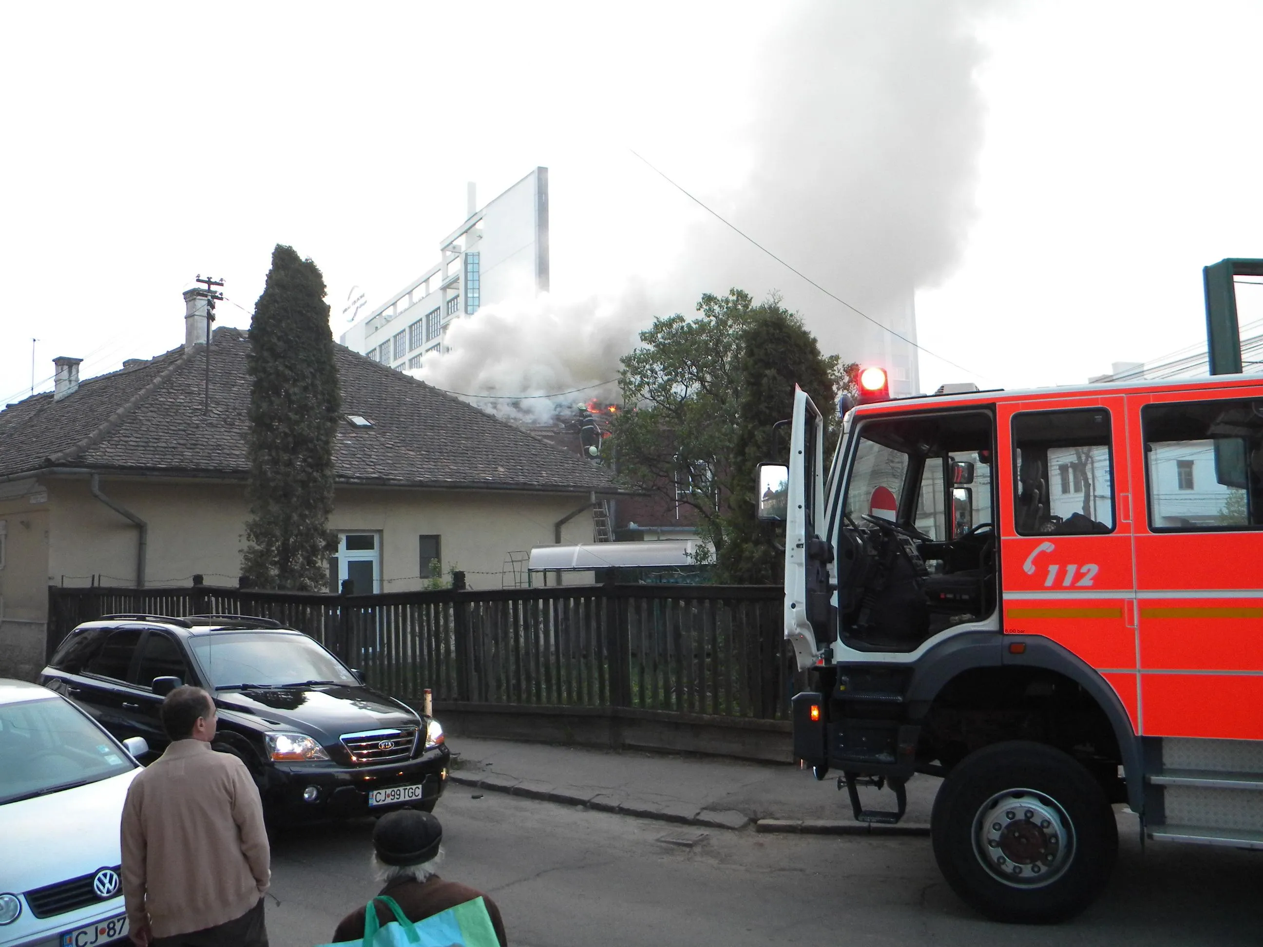 O casa de pe strada Tipografiei din Cluj-Napoca a luat foc duminica dupa-amiaza. Pompierii au intervenit cu trei autospeciale, dar au stins focul cu greu din cauza lipsei hidrantilor.