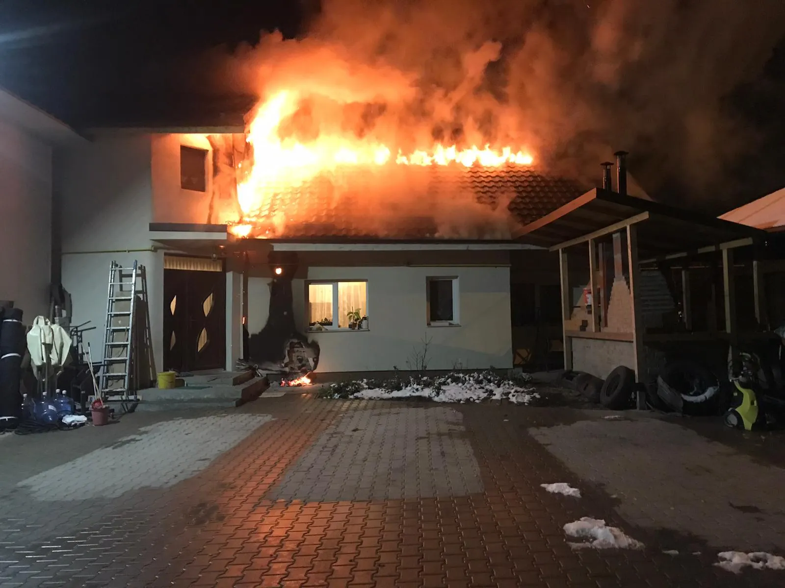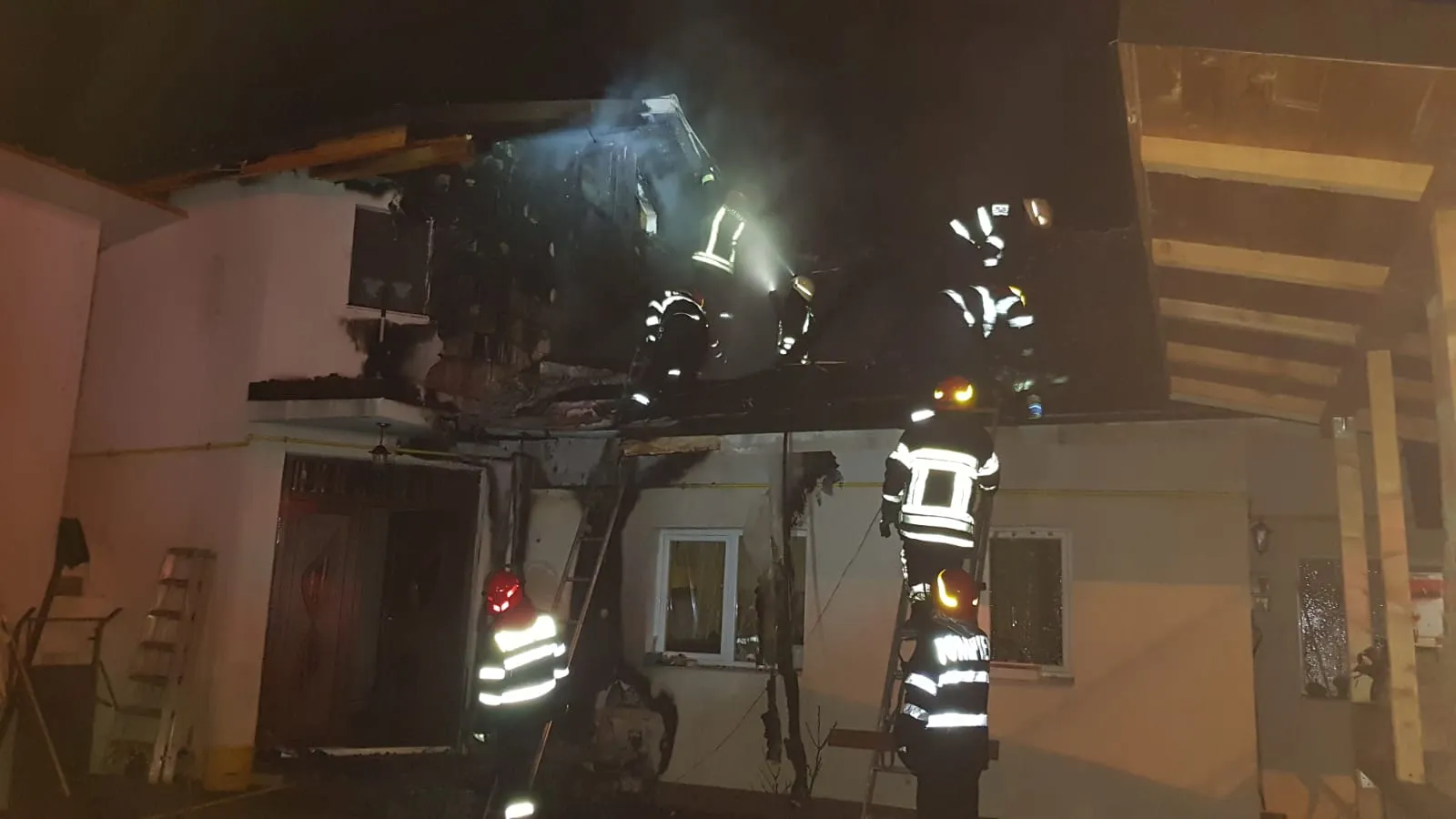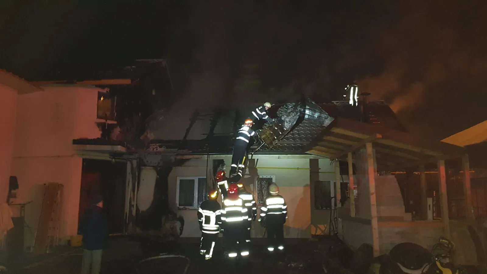 Pompierii au găsit acoperișul casei, de circa 100 mp, cuprins în totalitate de flăcări, care s-au extins și la izolația casei alipite de primul imobil afectat.