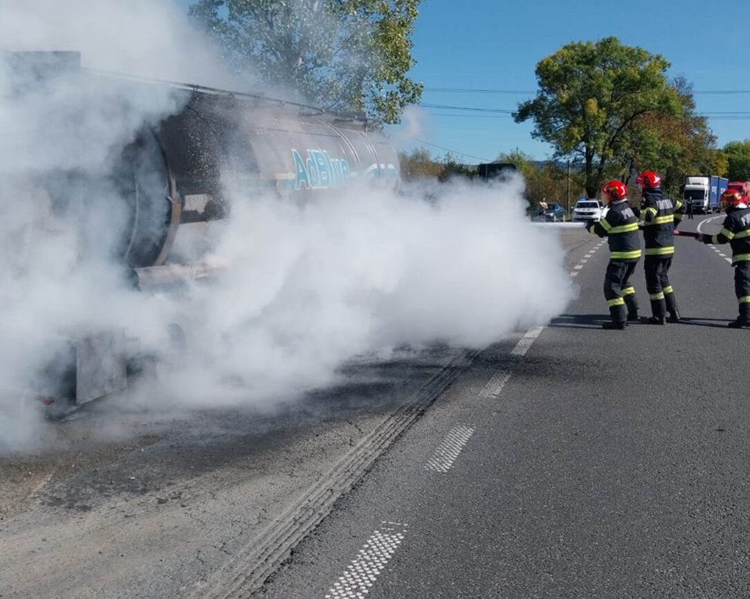 O cisternă a luat foc la ieșirea din județul Cluj. Ce mare noroc a diminuat dezastrul