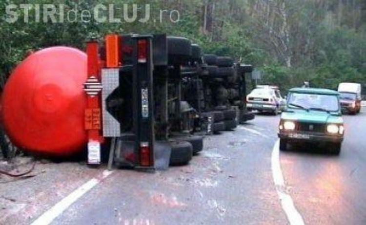 Reprezentantii IPJ Cluj au anuntat ca traficul a fost deviat pe la Huedin - Zimbor - Zalau - Marghita, pana cand cisterna va fi inlaturata de pe carosabil.