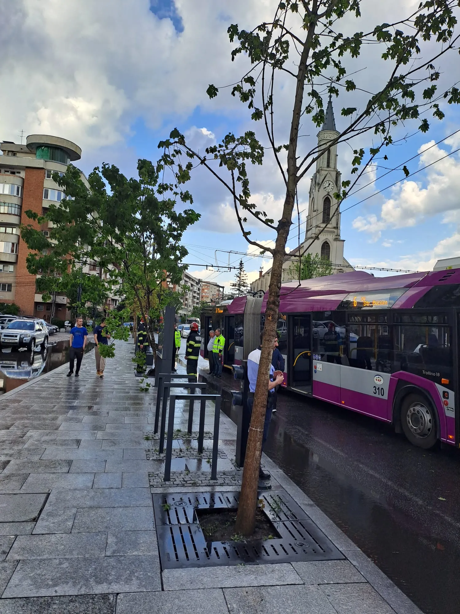 Pompierii au îndreptat arborele înclinat înspre partea pietonală și au solicitat un echipaj RADP din cadrul Primăriei municipiului Cluj-Napoca pentru a stabiliza arborele respectiv.