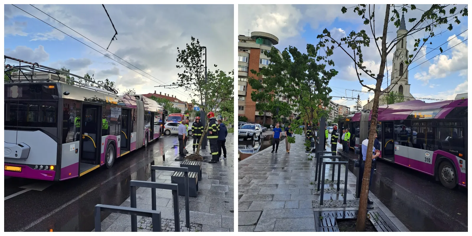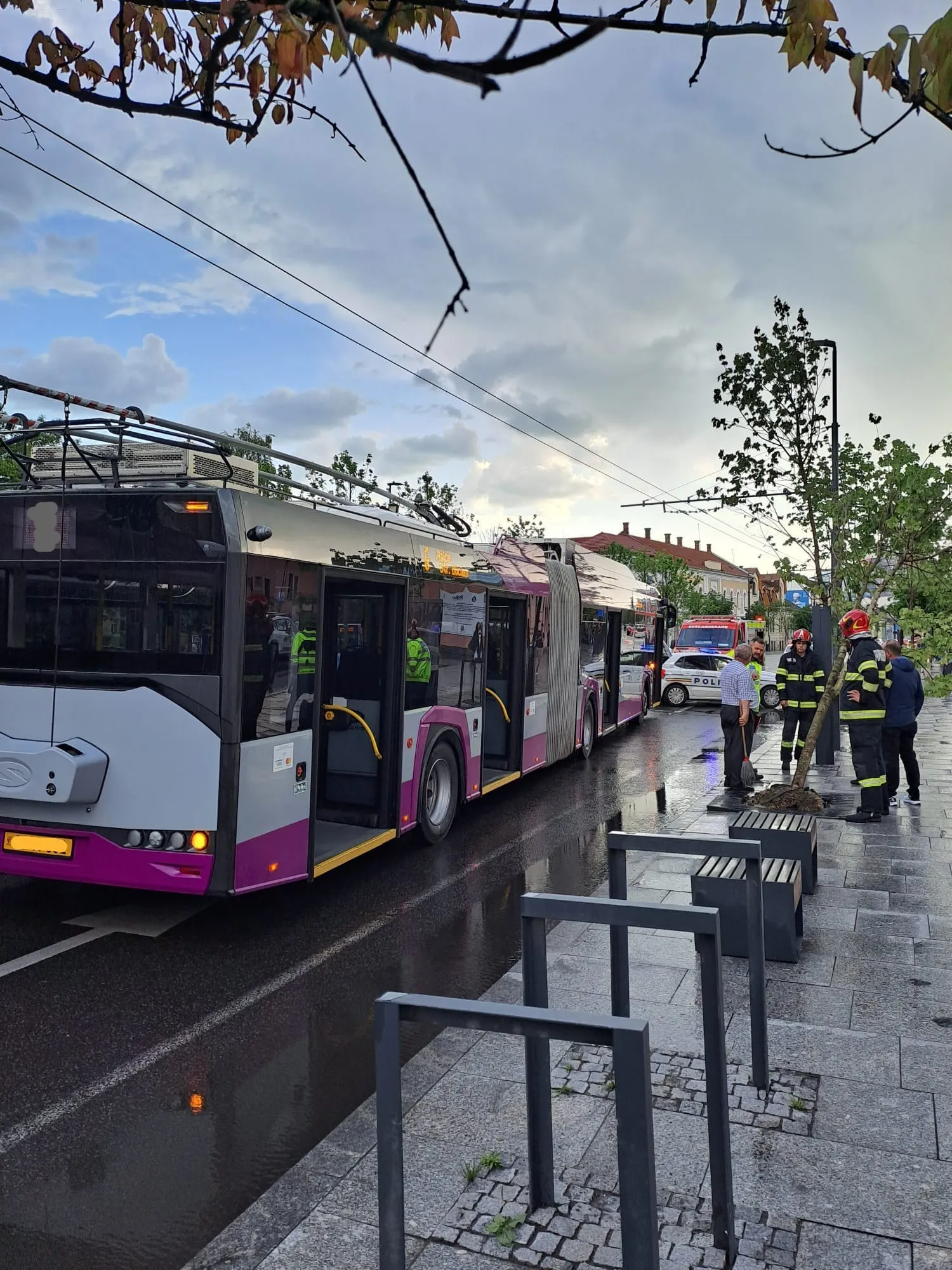 Pompierii din cadrul Detașamentului 1 Cluj-Napoca au intervenit la un eveniment petrecut pe Bulevardul 21 Decembrie 1989, din municipiul Cluj-Napoca, unde o femeie în vârstă de aproximativ 60 de ani a avut nevoie de îngrijiri medicale, după ce mijlocul de transport în comun a încercat să evite un arbore ce s-a înclinat înspre carosabil.