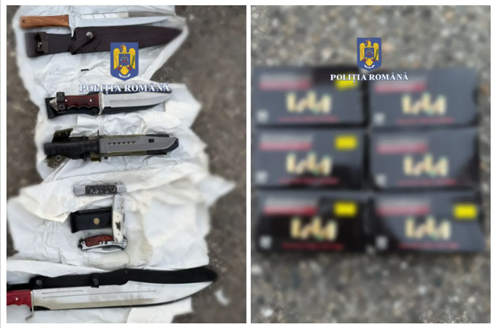 O clujeancă a primit din Spania, prin curier, un colet cu... mulțime de arme albe și muniție letală. Polițiștii au prins-o după ridicarea coletului FOTO