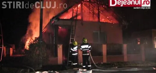 O clujeancă a rămas în stradă după ce casa i-a fost mistuită de flăcări. Aproape a fost strivită de grinzi VIDEO