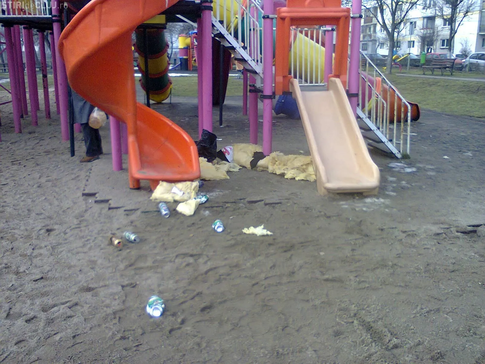 O clujeancă s-a dus cu copilul la locul de joacă și a găsit un boschetar în tobogan - FOTO