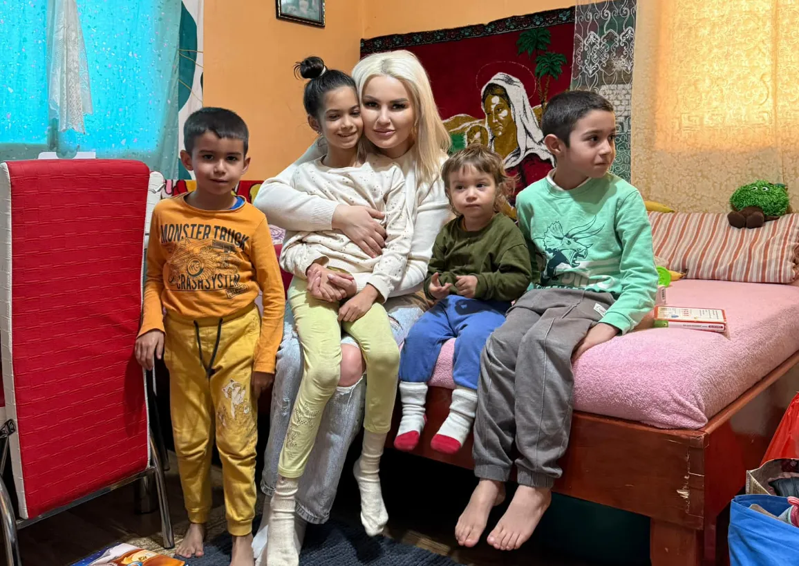 Într-o locuință mică, formată dintr-o cameră și o bucătărie, trăiesc șase suflete, iar în câteva săptămâni va veni pe lume și al șaptelea. Deși condițiile sunt modeste, casa lor strălucește de curățenie și ordine, o dovadă că sărăcia nu înseamnă neapărat și mizerie. Pe ulița lor nu există asfalt, doar noroi, dar înăuntru domnește o atmosferă caldă și primitoare.