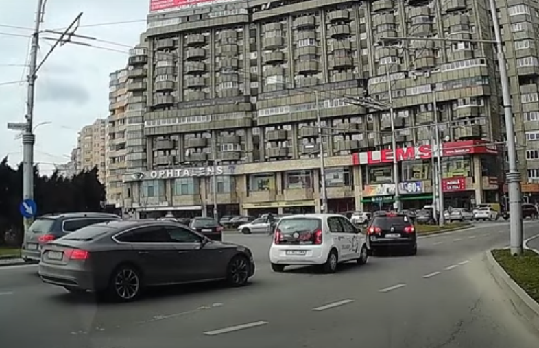 O ”cutie de chibrituri” a intrat într-un VW, în sensul giratoriu din Mărăști! Cine e vinovat? - VIDEO