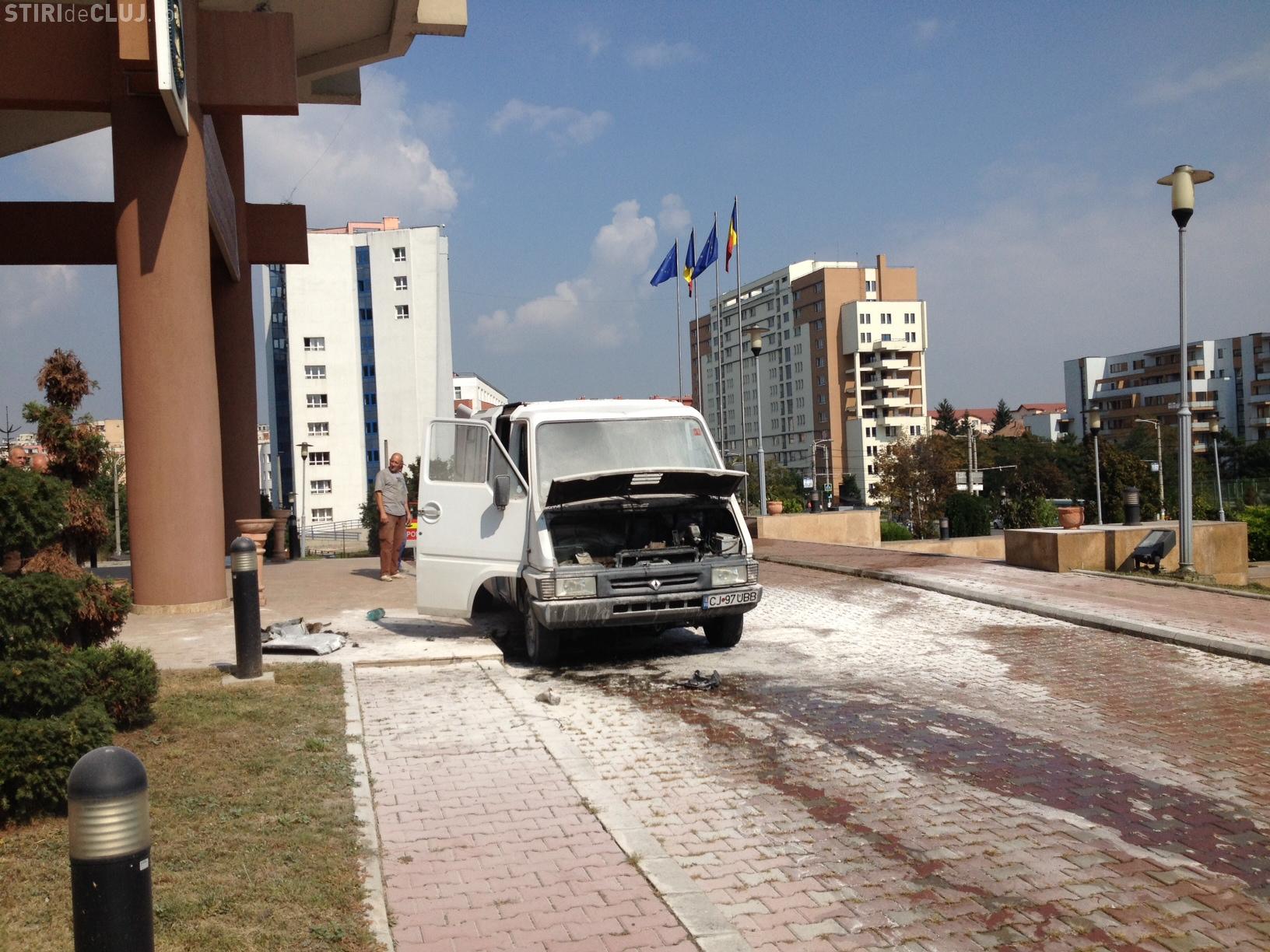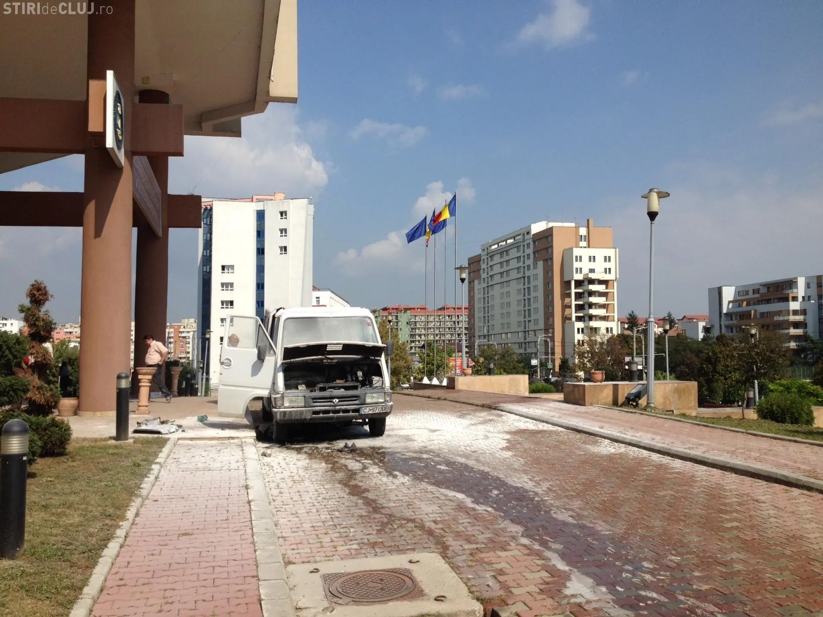 Pompierii nu au stabilit care a fost cauza incendiului. Duba aparține UBB Cluj.