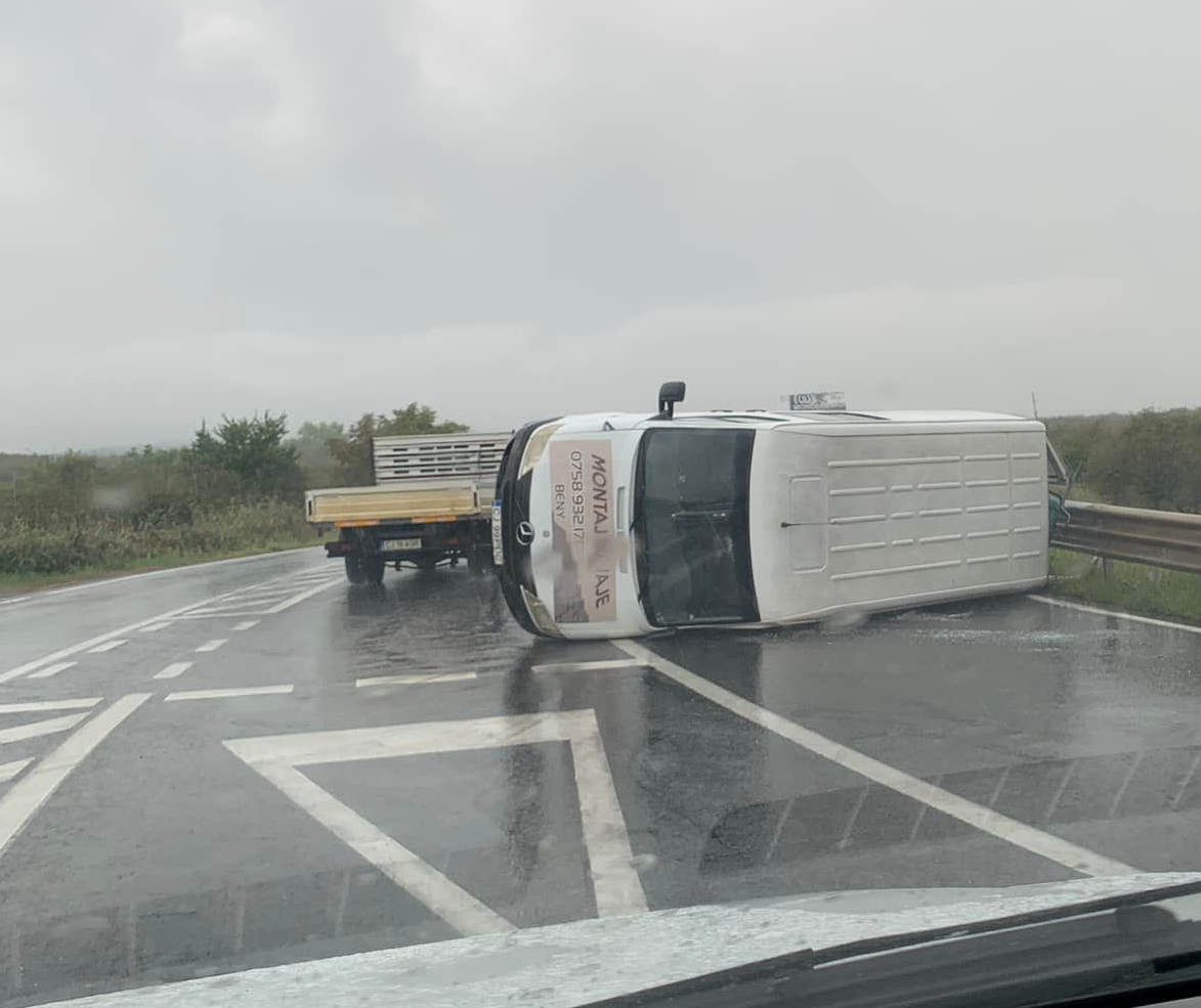 O dubă s-a răsturnat miercuri dimineața, în jurul orei 9.25, pe Calea Turzii.