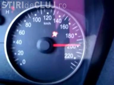 Vitezele de 200 de kilometri la ora sunt un lucru obisnuit pe autostrada Transilvania intre Campia Turzii si Gilau. O soferita s-a filmat in timp ce gonea pe asfalt, iar din masina familia o incuraja.