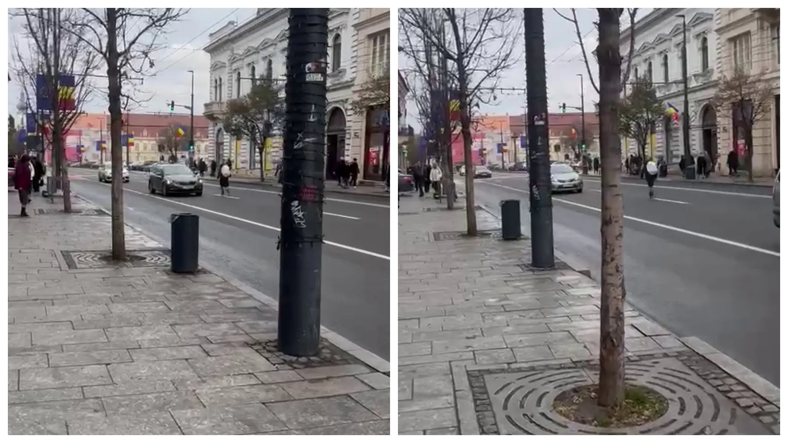 Un clip video cu o femeie care circula pe mijlocul străzii, printre mașini, a fost filmat pe strada Memorandumului.