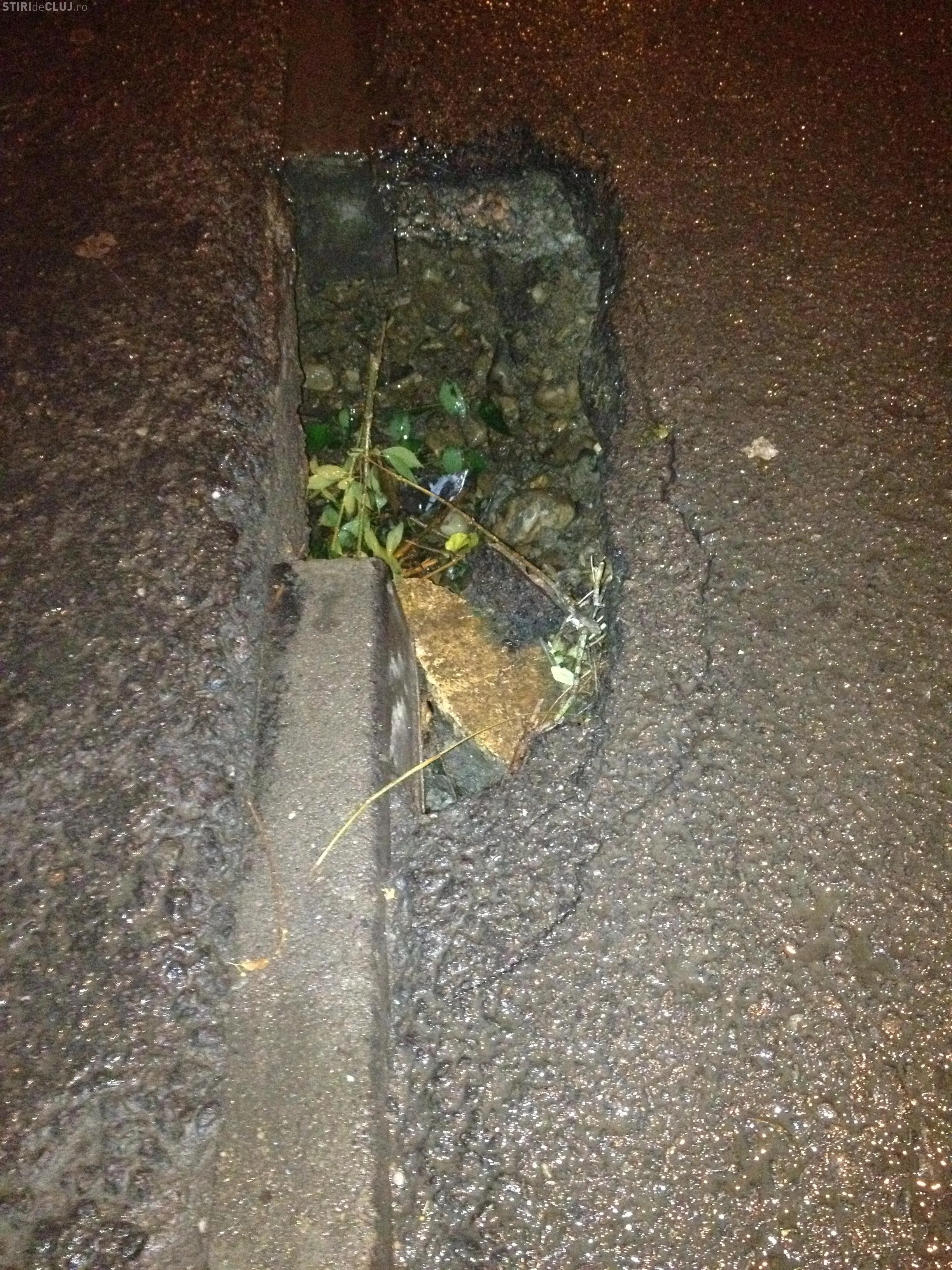 "Groapa peste care am dat in seara asta. Va rog mult sa semnalati cazul pentru a se lua masuri", ne-a scris Adrian Ghioltan. Mesajul cititorului Stiri de Cluj este adresat Primariei, care trebuie sa remedieze aceasta problema.