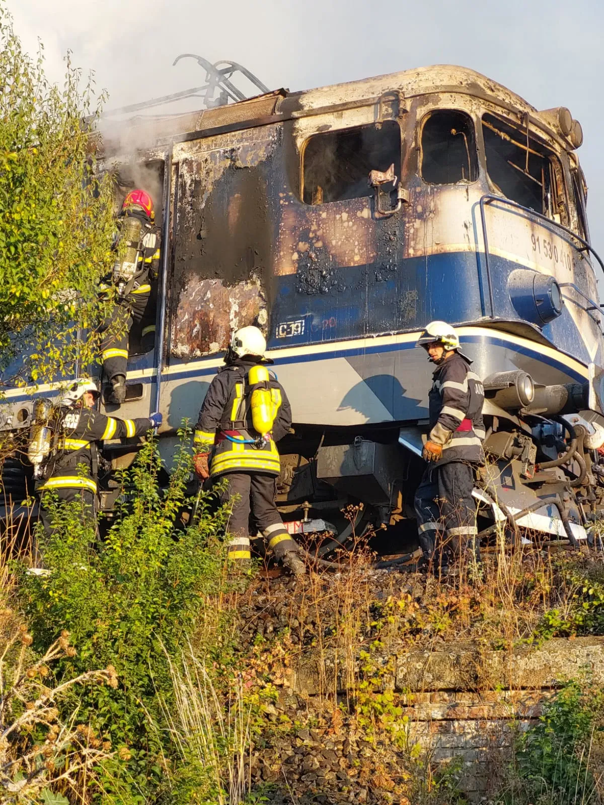 O locomotivă a luat foc pe Valea Drăganului, chiar în halta de tren. Incidentul s-a produs luni, 23 august, în jurul orei 17.30.