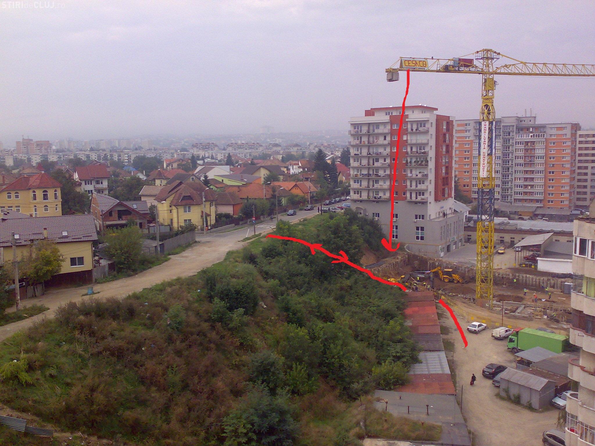 "Recent Transilvania Constructii a deschis un santier in zona Marasti, in apropierea Bibliotecii Octavian Goga. O macara a fost instalata in imediata vecinatate a scarilor care coboara de pe strada Semenicului spre calea Dorobantilor. Bratul scurt al macarelei cu niste greutati imense sta suspendat in permanenta deasupra oamenilor care urca sau coboara scarile. Orice ar pica de pe macara ar putea fi fatala pietonilor", a declarat Csaba Papp, un clujean care locuieste in zona.