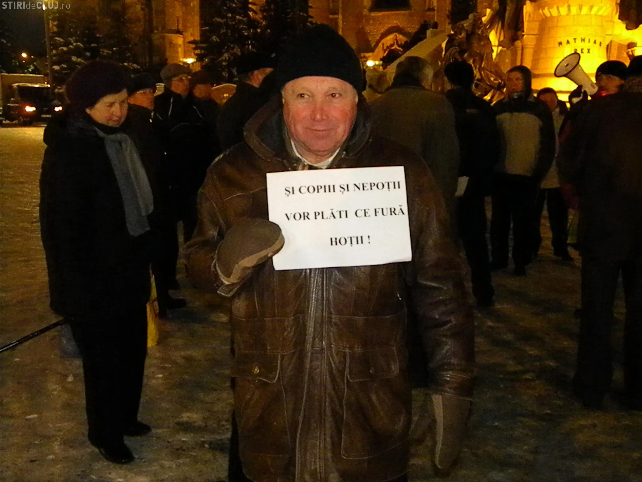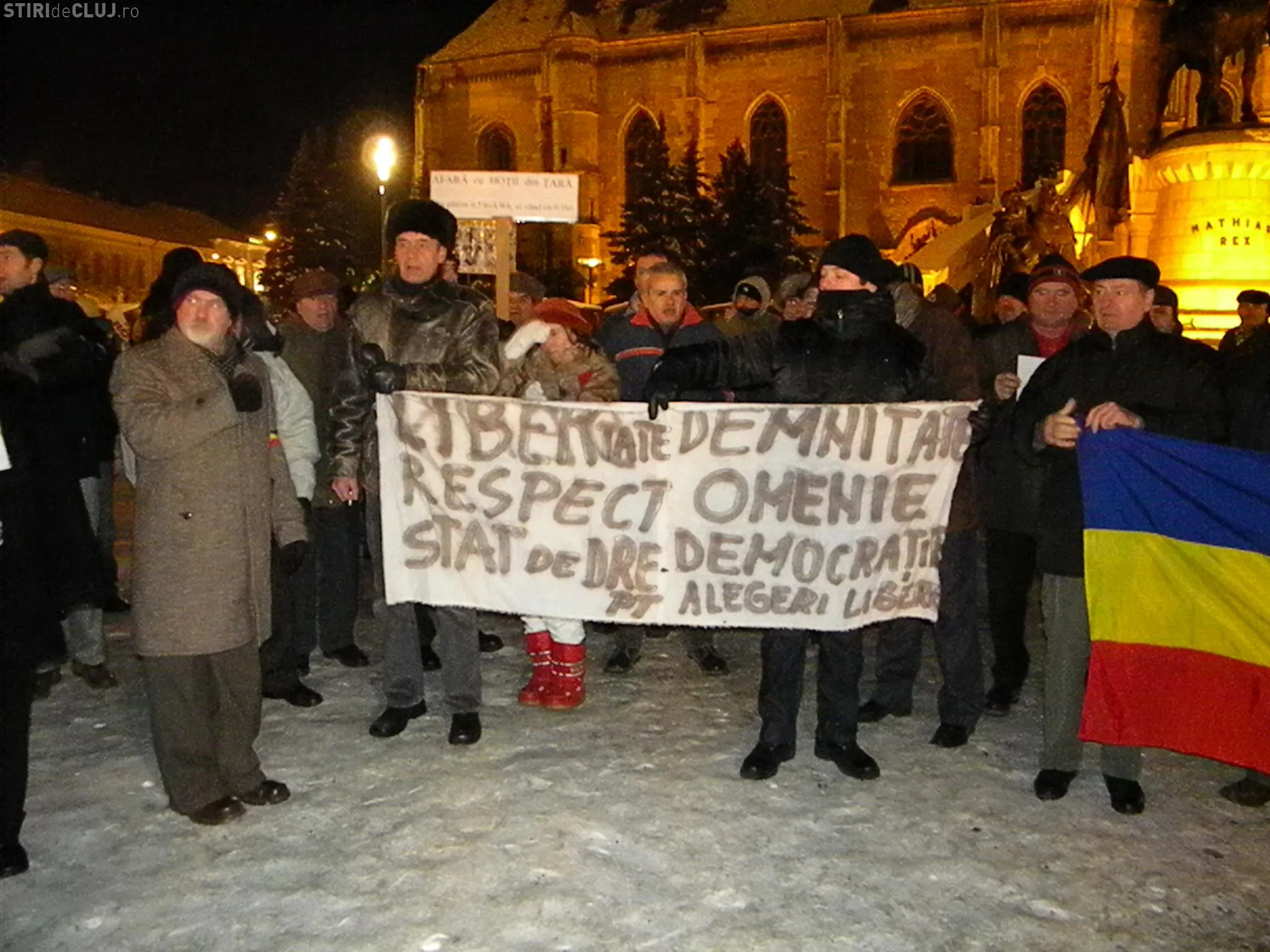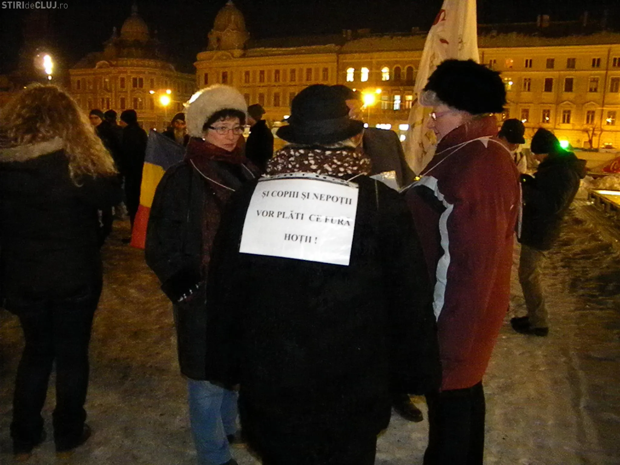 O "mana" de clujeni ingheata in Piata Unirii, la proteste: Base hai in Piata, avem whiskey cu gheata VIDEO
