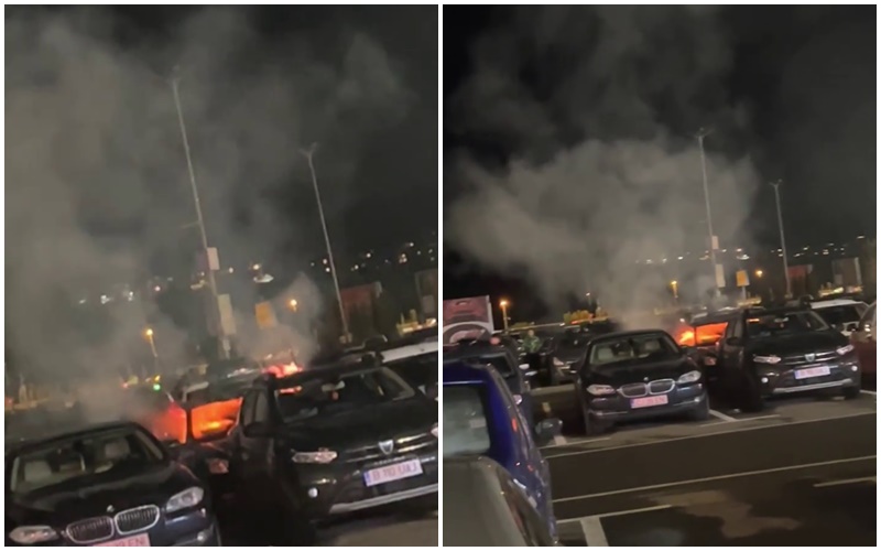 O mașină a ars ca o torță în parcarea de la VIVO Cluj. Martorii spun că incendiul a fost unul puternic și nimeni nu s-a putut apropia.