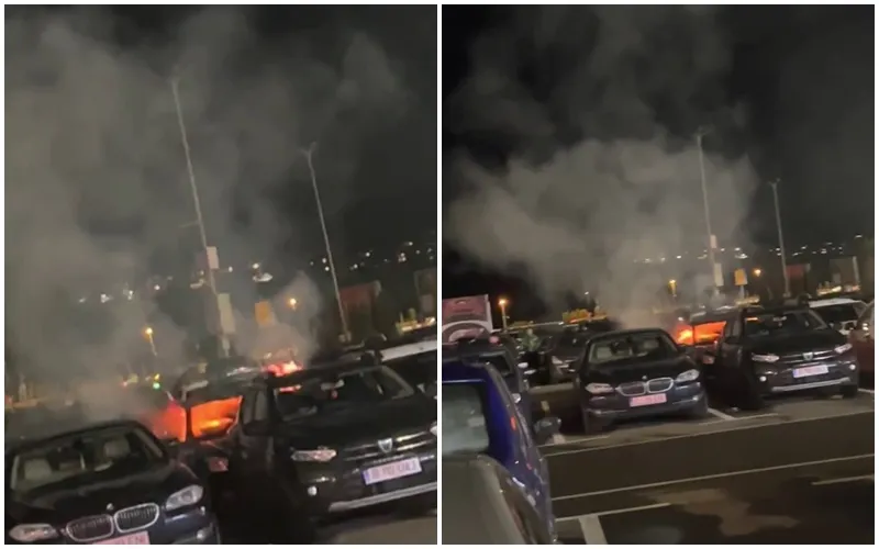Pompierii au fost chemați la acest incident, petrecut marți seara, când parcarea era plină de mașini.